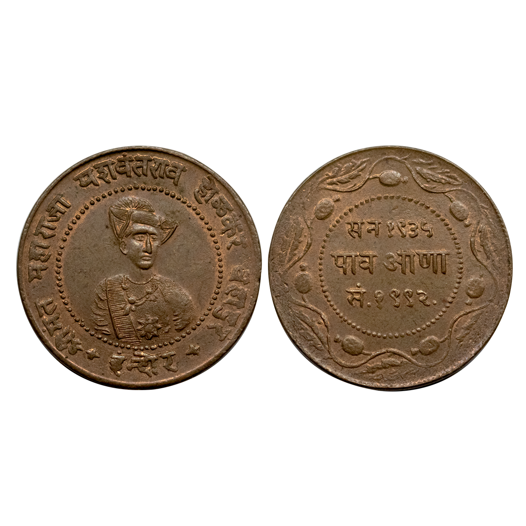 Hyderabad State, Afzal-ud doula (AH 1273-1285 /1857-1869 AD), Haiderabad Mint, Copper Paisa, 10.84 gms, In the name of Bahadur Shah II, Obv: Persian legend "Badshah Ghazi" with bow & arrow symbol, Rev: Persian legend "Sana 1x julus", KM # C86, about very fine, scarce.