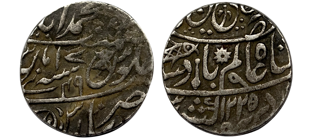 Bengal Presidency, INO Shah Alam II (AH 1174-1221, 1759-1806 AD), Silver ½ Rupee, 5.73 gms, Murshidabad Mint, RY 19, Prid #180, very fine, scarce.