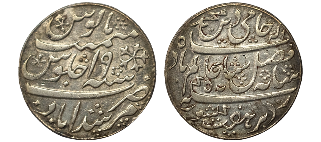 Bengal Presidency, INO Shah Alam II (AH 1174-1221, 1759-1806 AD), Silver Rupee, 11.59 gms, Murshidabad Mint, RY 19, KM # 109, very fine, scarce.