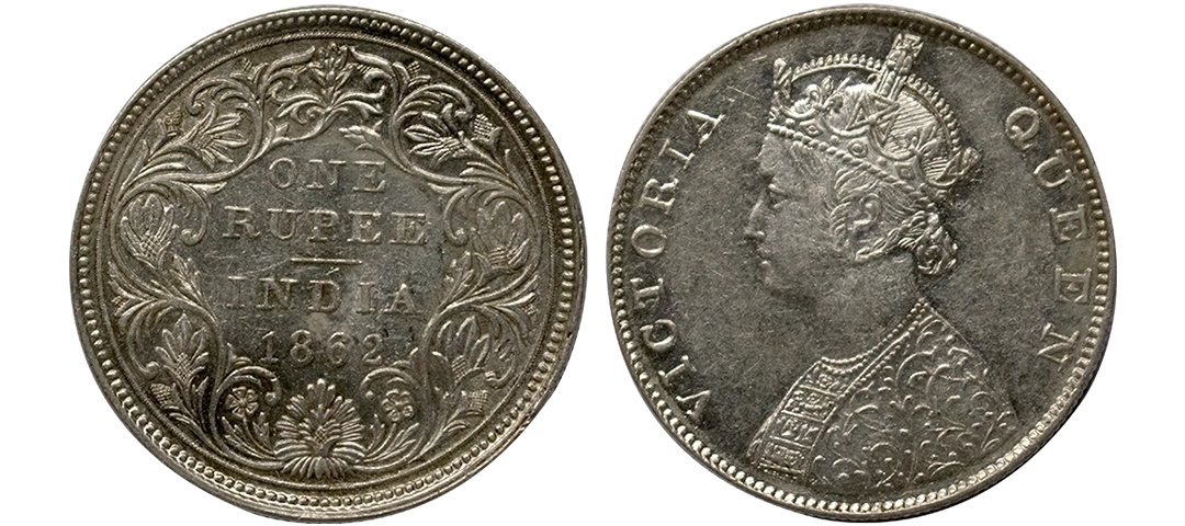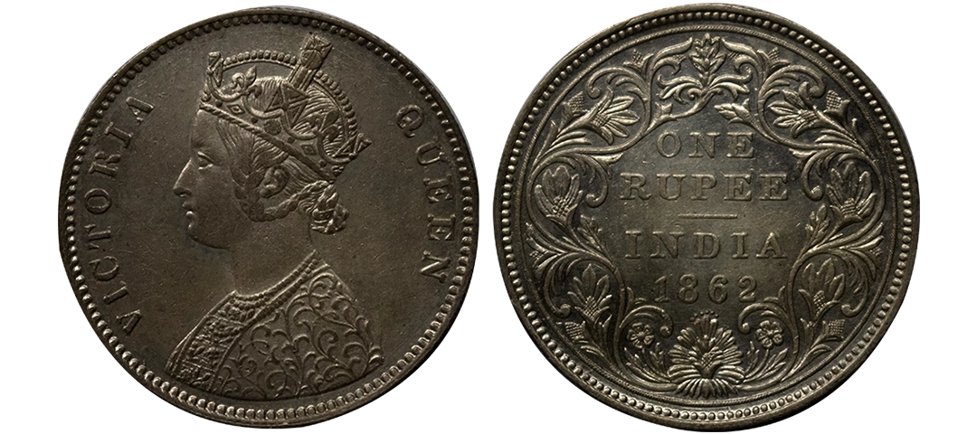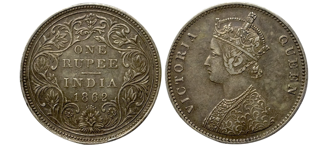 Victoria, Silver Rupee, 1862, Bombay Mint, Obverse A, reverse II, 0/5 dots, GK 316, legends in the Obverse are broken, About Extremely Fine, Very scarce