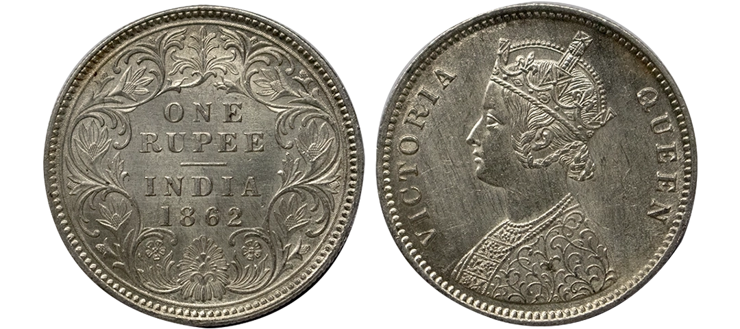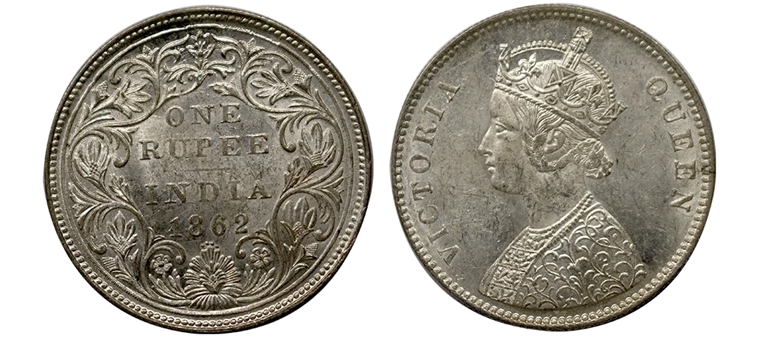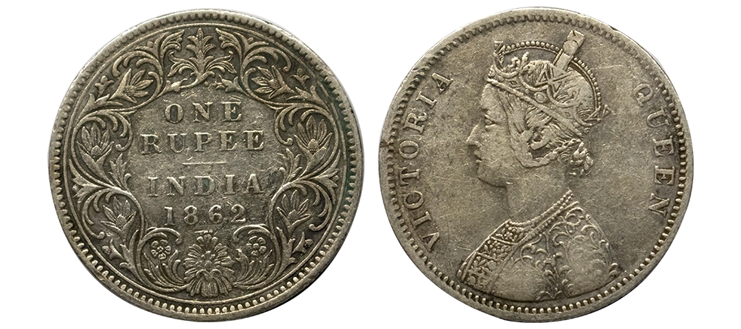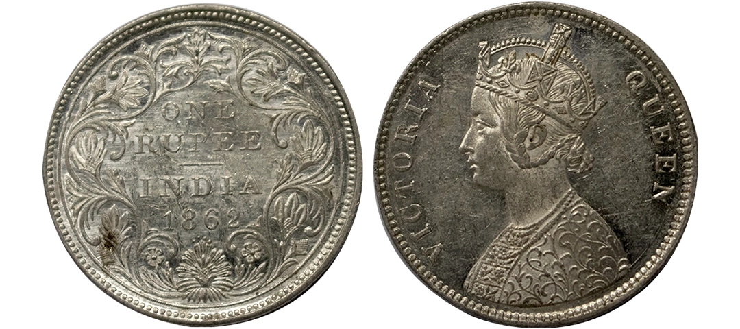 Victoria, Silver Rupee, 1862, Bombay Mint, Obverse A, reverse I, 1/2 dots, with initial 'J',GK 355, Rare.