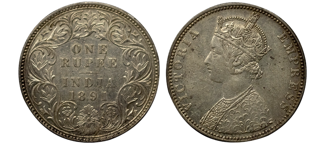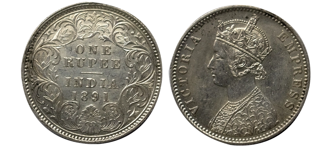 Victoria, Silver Rupee, 1891, Calcutta Mint, Obverse C2, reverse I, b incuse, toned, unc details, very scarce, Gk 569.