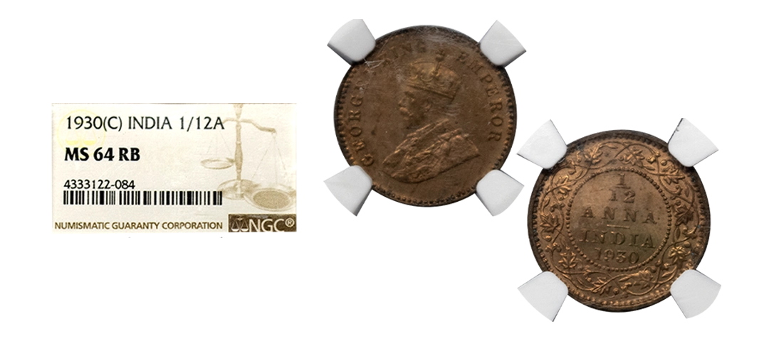 George V, Copper Quarter Anna, 1919, Calcutta Mint, uncirculated.