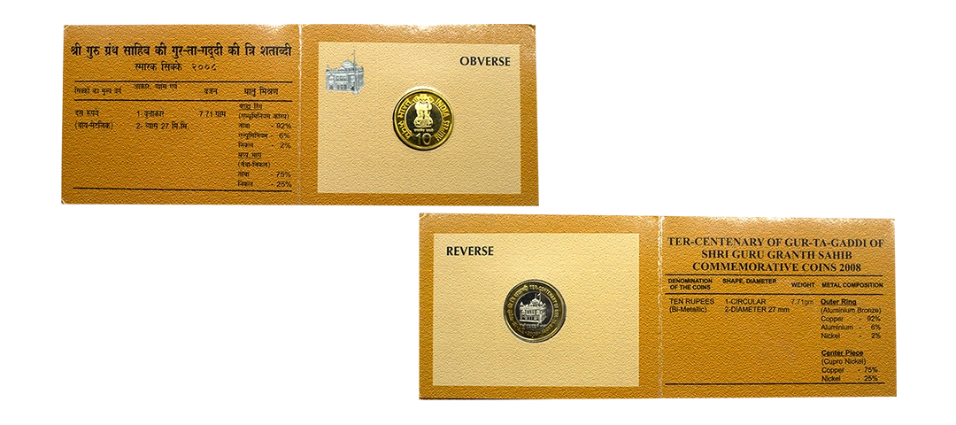 Ter Centenary of Gur Ta Gaddi of Shri Guru Granth Sahib of Mumbai Mint, 2008, 10 Rupees, UNC, scarce.