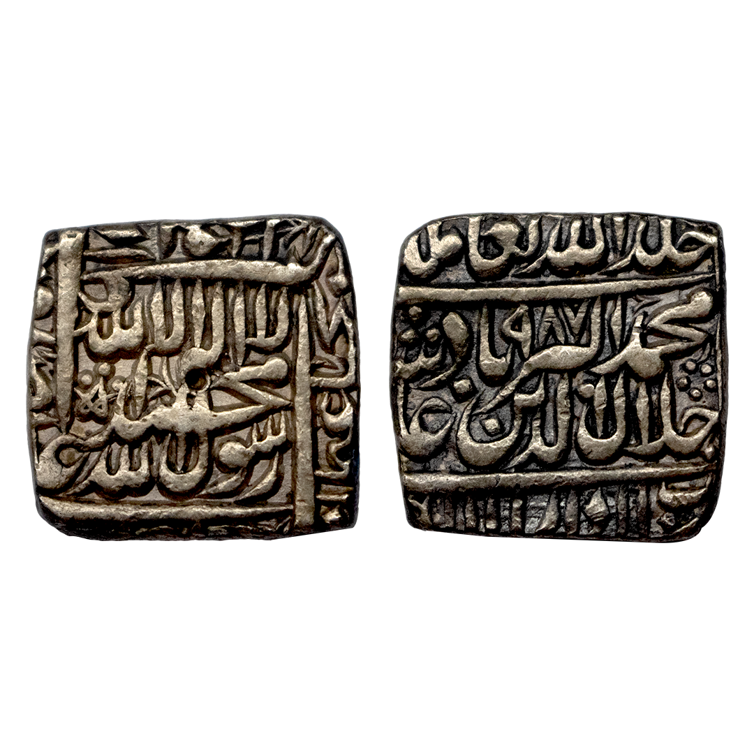 Akbar, Kabul mint, Silver, ½ Rupee, Allahu Akbar type, Ilahi 47, Mihir Month. Test marks, Very Fine+, Rare.