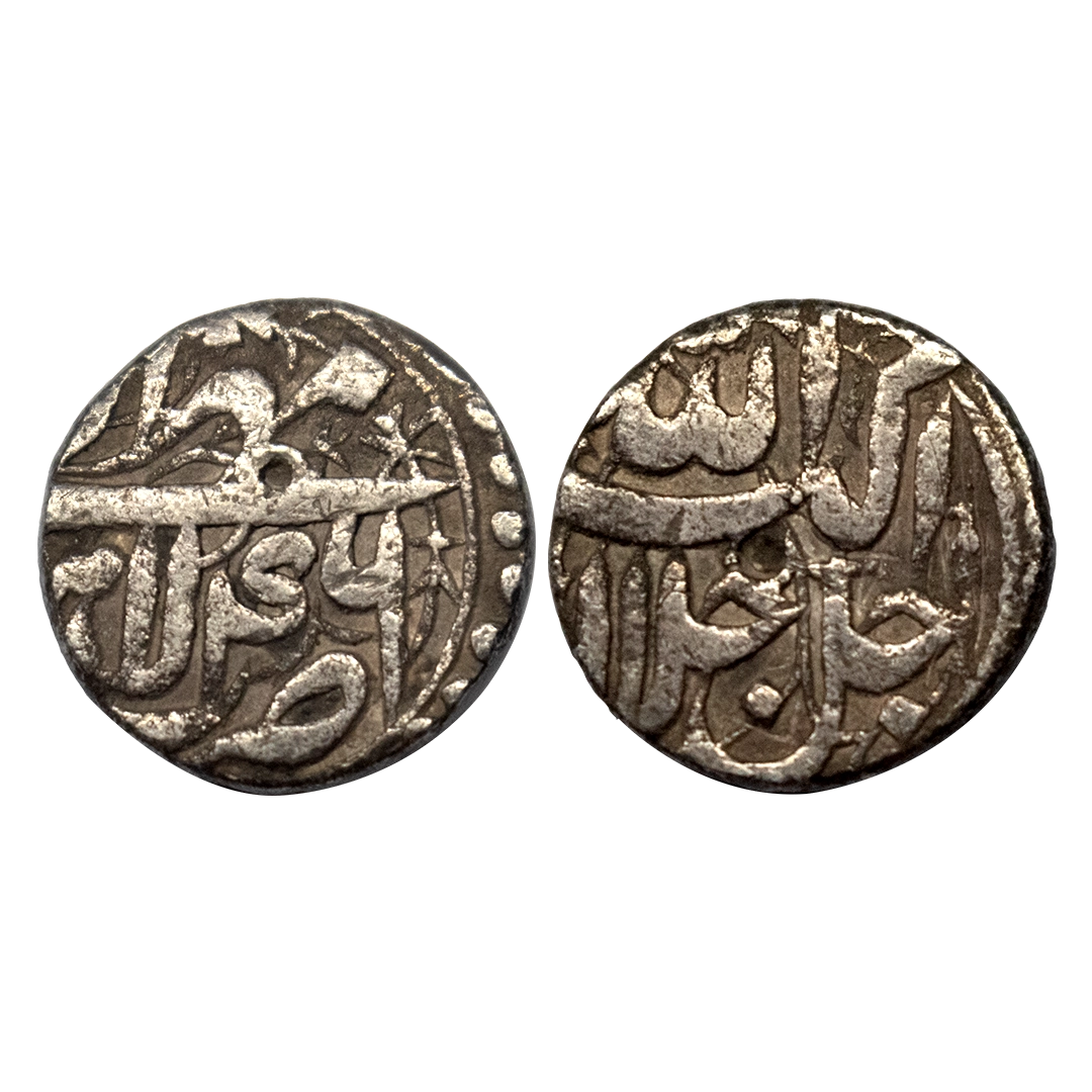 Akbar, Lahore mint, Silver, ½ Rupee, Allahu Akbar type, Ilahi 46, Mihir Month. Test marks, Very Fine+, Very Rare.