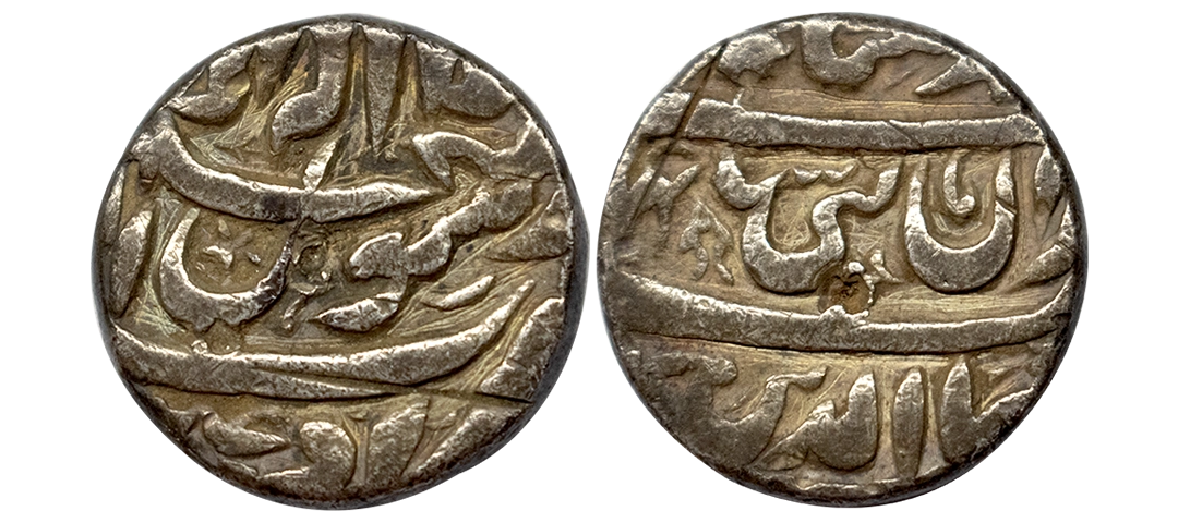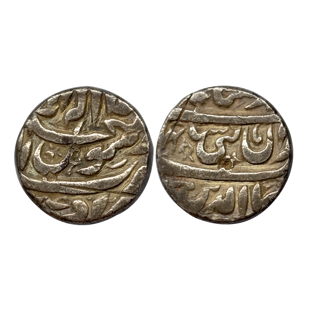 Shah Jahan, Ujjain Mint, Silver, Rupee, Kalima type with mint name in the last line below Kalima on obv, RY 4. Test marks, About Extremely Fine, Rare.