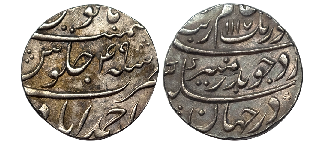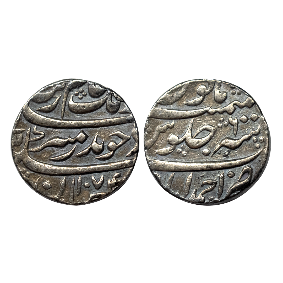 Aurangzeb (1658-1707 AD), silver rupee, mint not visible, 'Badar-e-munir' couplet, AH 1115/RY 48, 11.54g, Extremely fine, Very scarce.