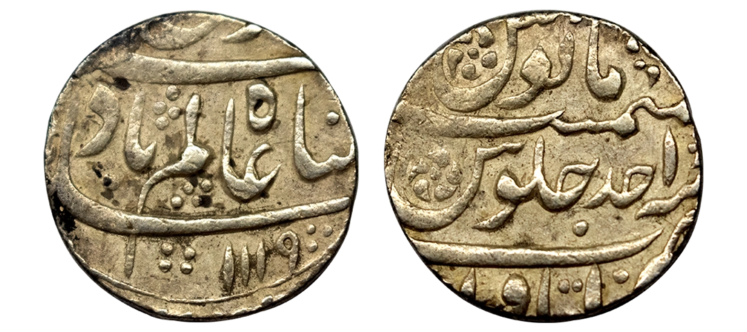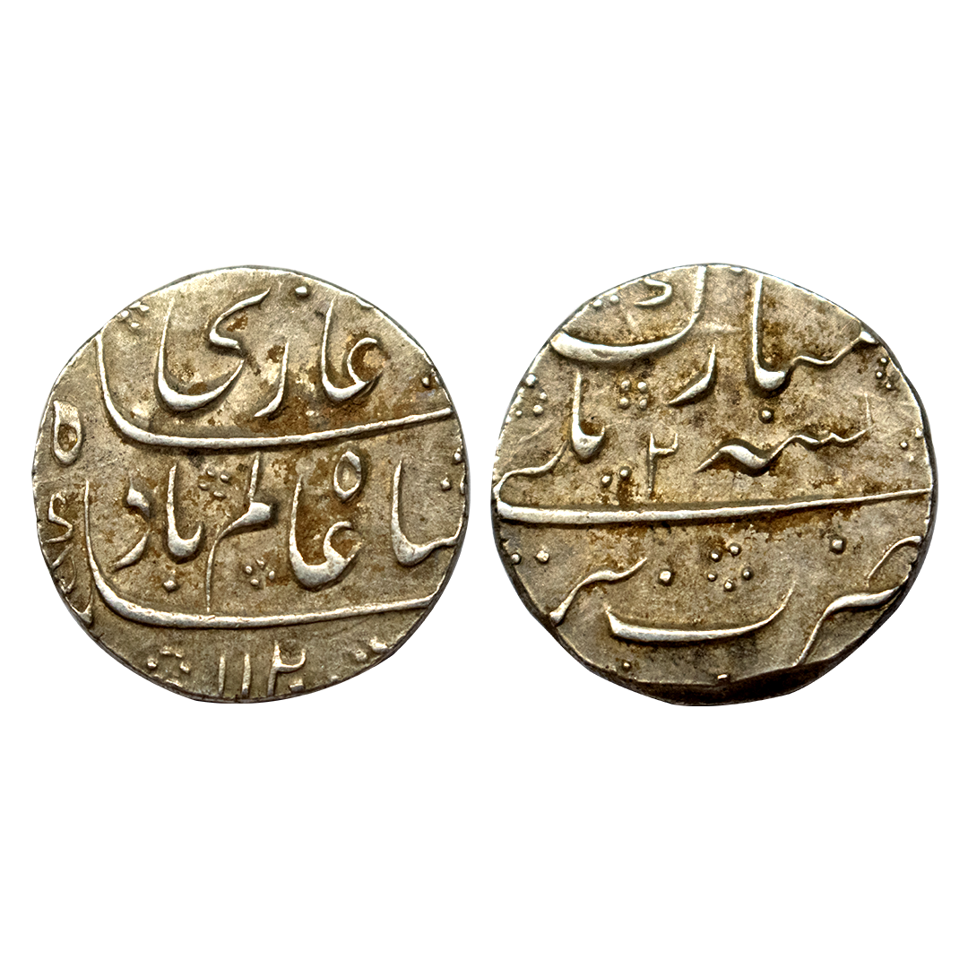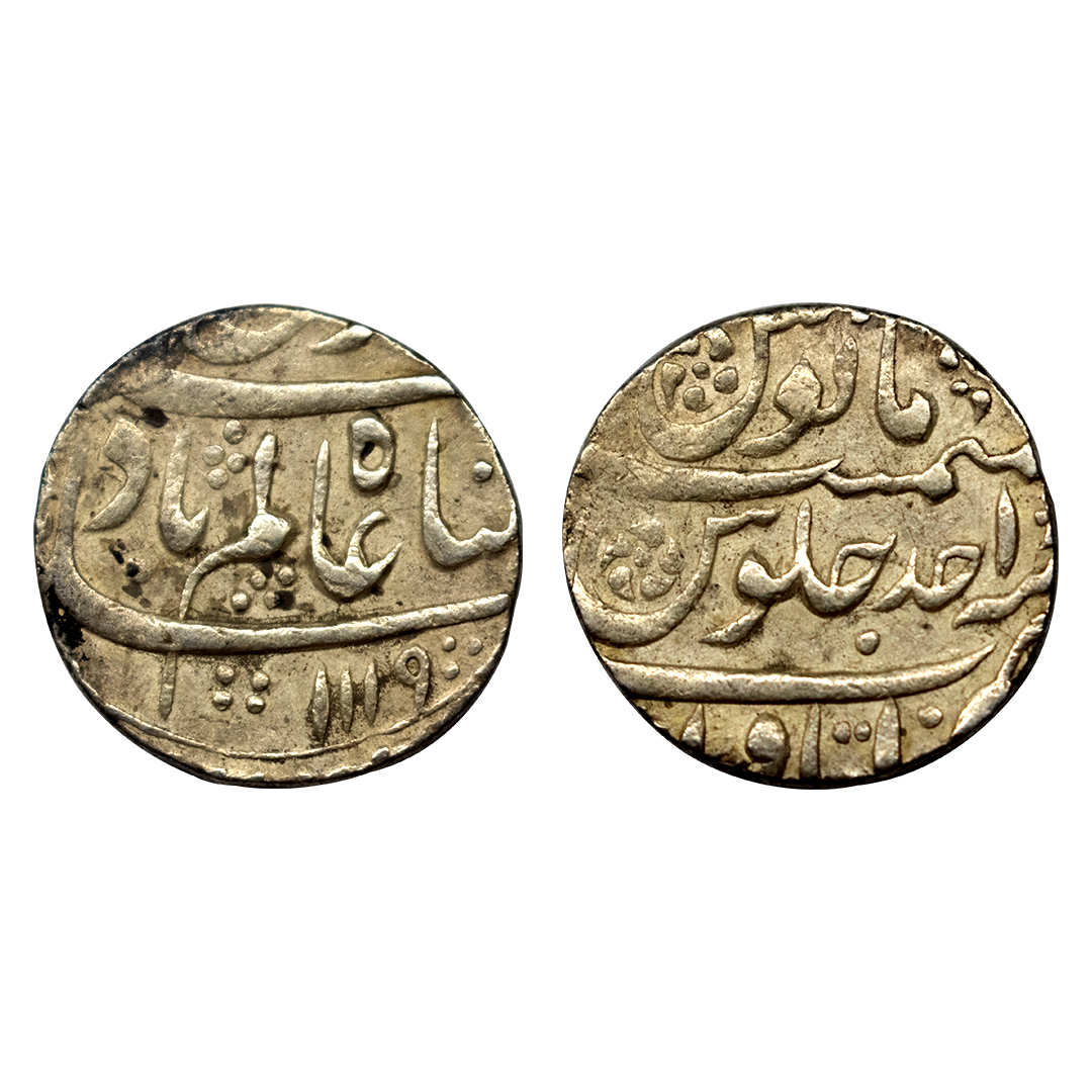 Shah Alam I, Rupee, Azimabad Mint, complete Mint name in the top line on rev, AH 1120, RY 2. Broad flan, Test Marks, Very Fine+, Scarce.