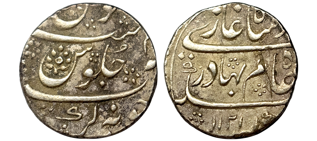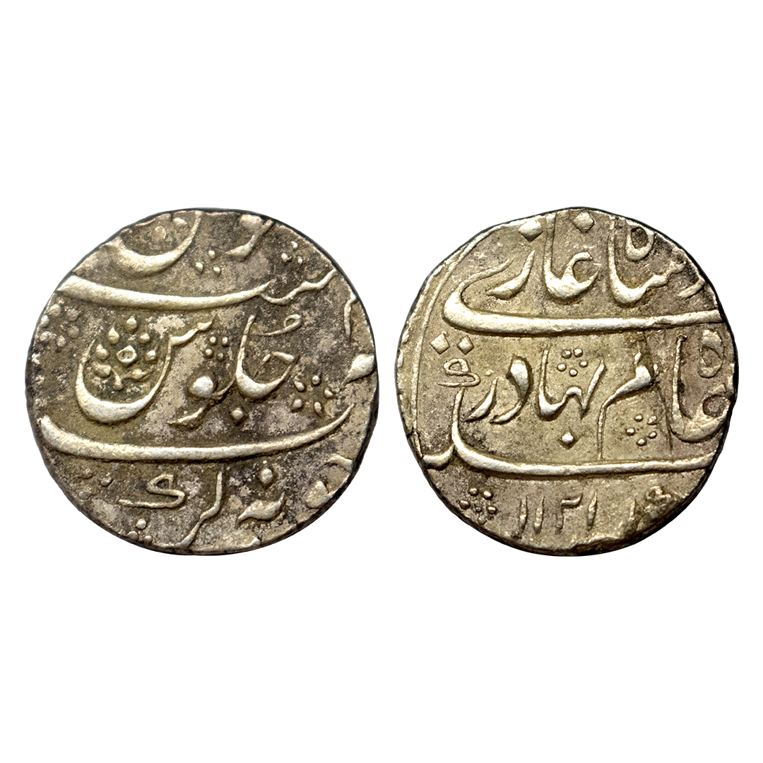 Shah Alam I, Rupee, Bareli Mint, complete Mint name in the bottom line on rev, Ahad Mubarak type, AH 1120, RY 2. No Test Marks, Extremely Fine+, Scarce.