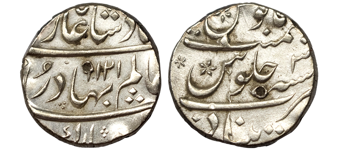 Shah Alam I, Rupee, Itawa Mint, Mint name in the bottom line on rev, AH 1119, RY Ahad (1). Minor Test Marks, Very Fine+, Scarce.
