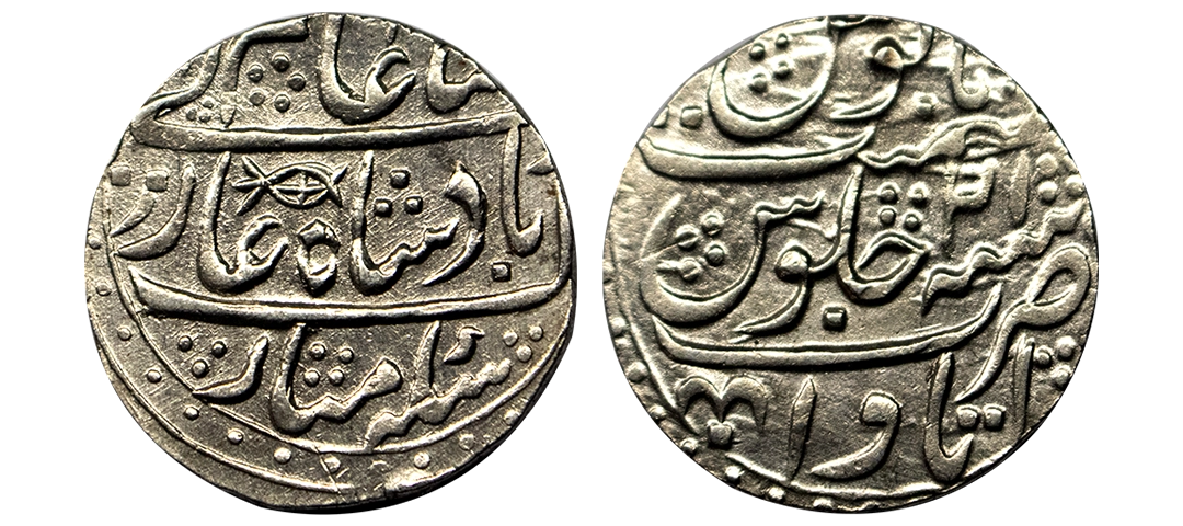 Awadh, Allahabad Mint, Silver Rupee, in the name of Shah Alam II, RY 21, Fish mint mark on obv ; Itawa Mint, 11.24gms, Extremely Fine.
