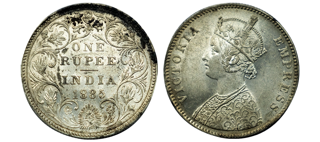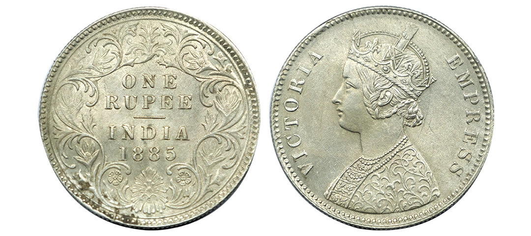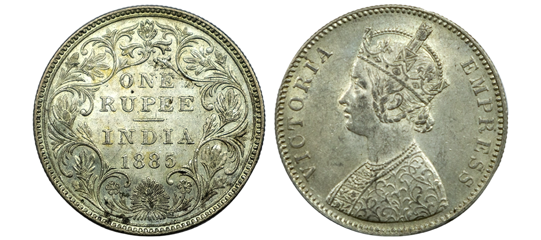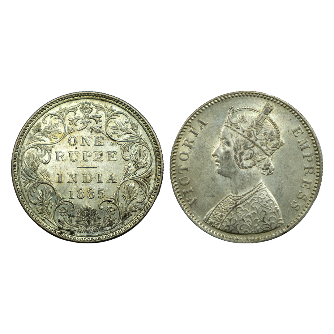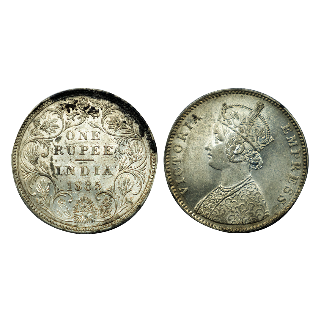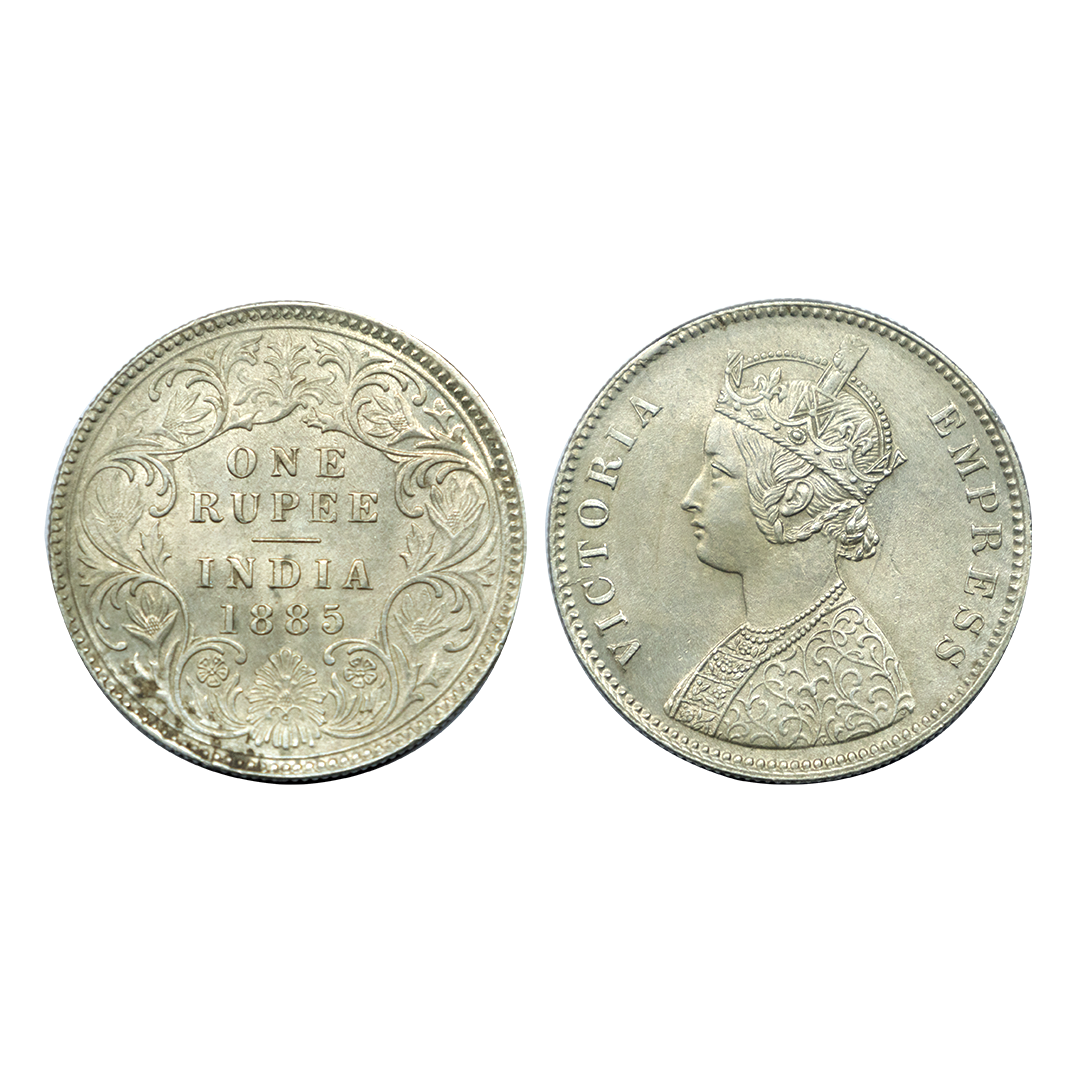 Victoria Empress, Silver One Rupee, 1885, Bombay Mint, Mule, C3/I/B raised, Unlisted, Fine, Extremely Rare.