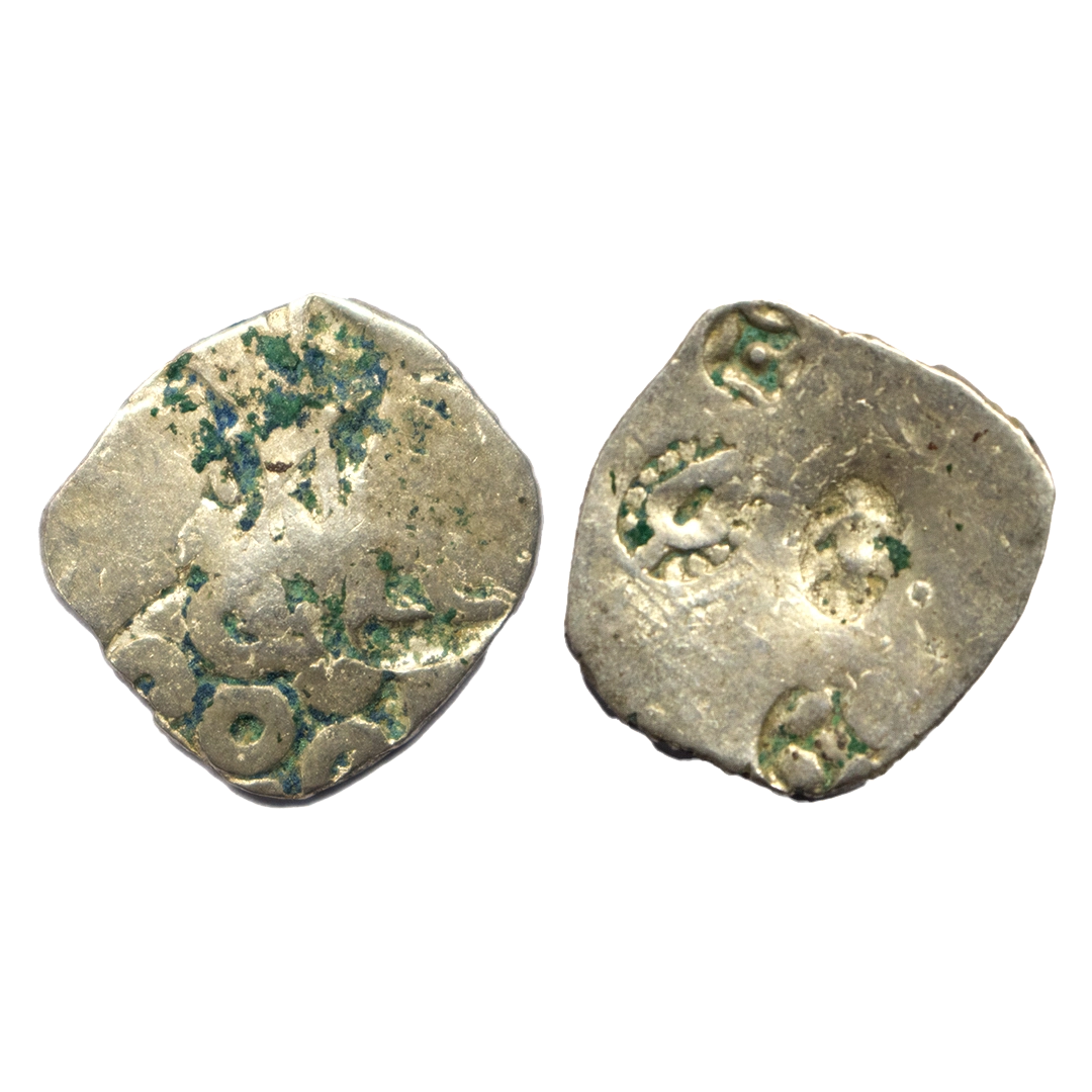Ancient, Archaic Series, Punch Marked Coinage, attributed to Pauravas of Kaushambi (c. 400-350 BC), Silver 1/2 Karshapana, very fine+, very rare.