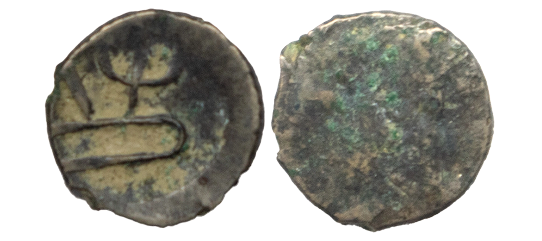 Archaic Coinage, Punch Marked, Panchala Janapada (c. 400-350 BC), Silver 1/2 Karshapana, 2.03Grms, Obv: A single composite of geometric symbol, Uniface. (Rajgor Series # 73). Very Fine+.