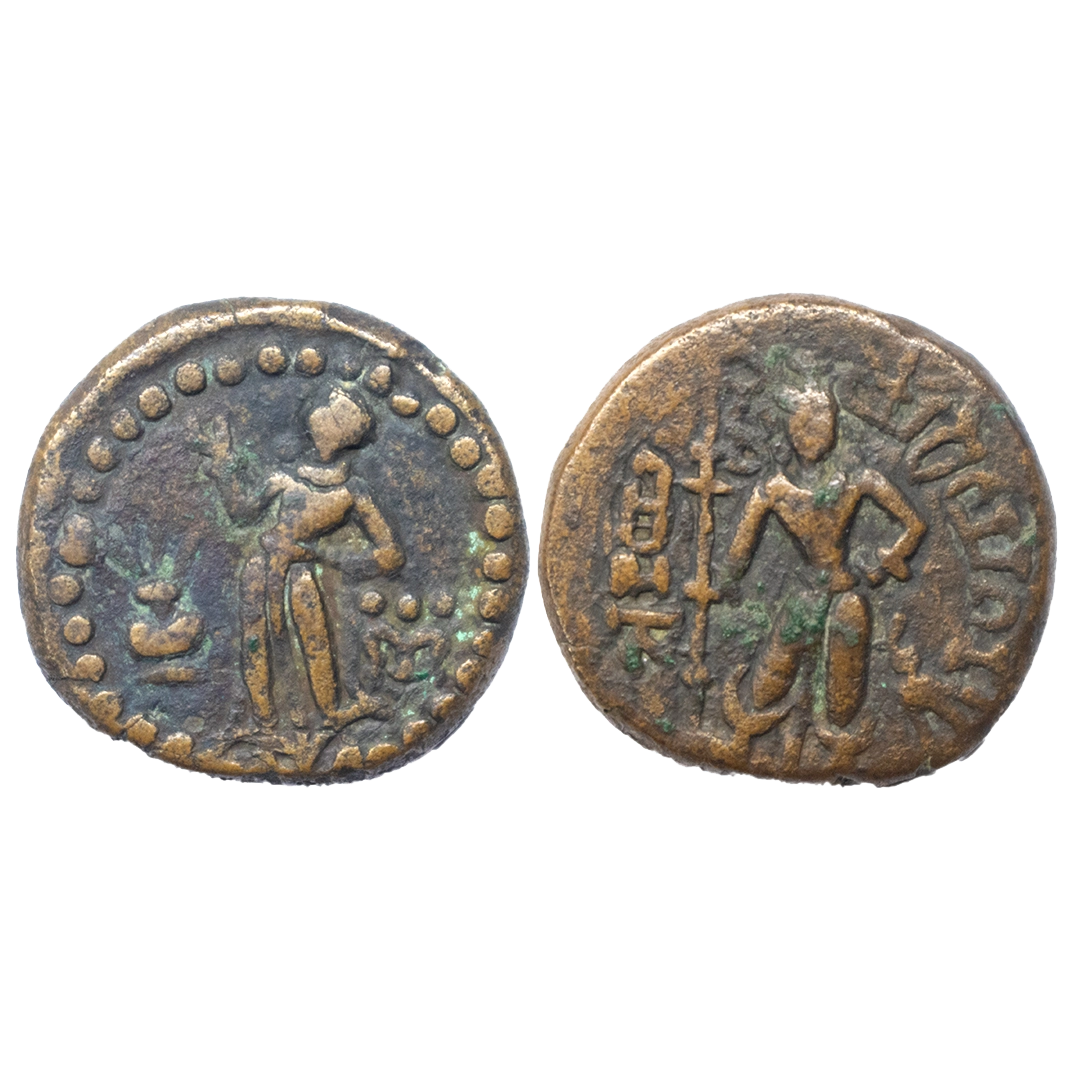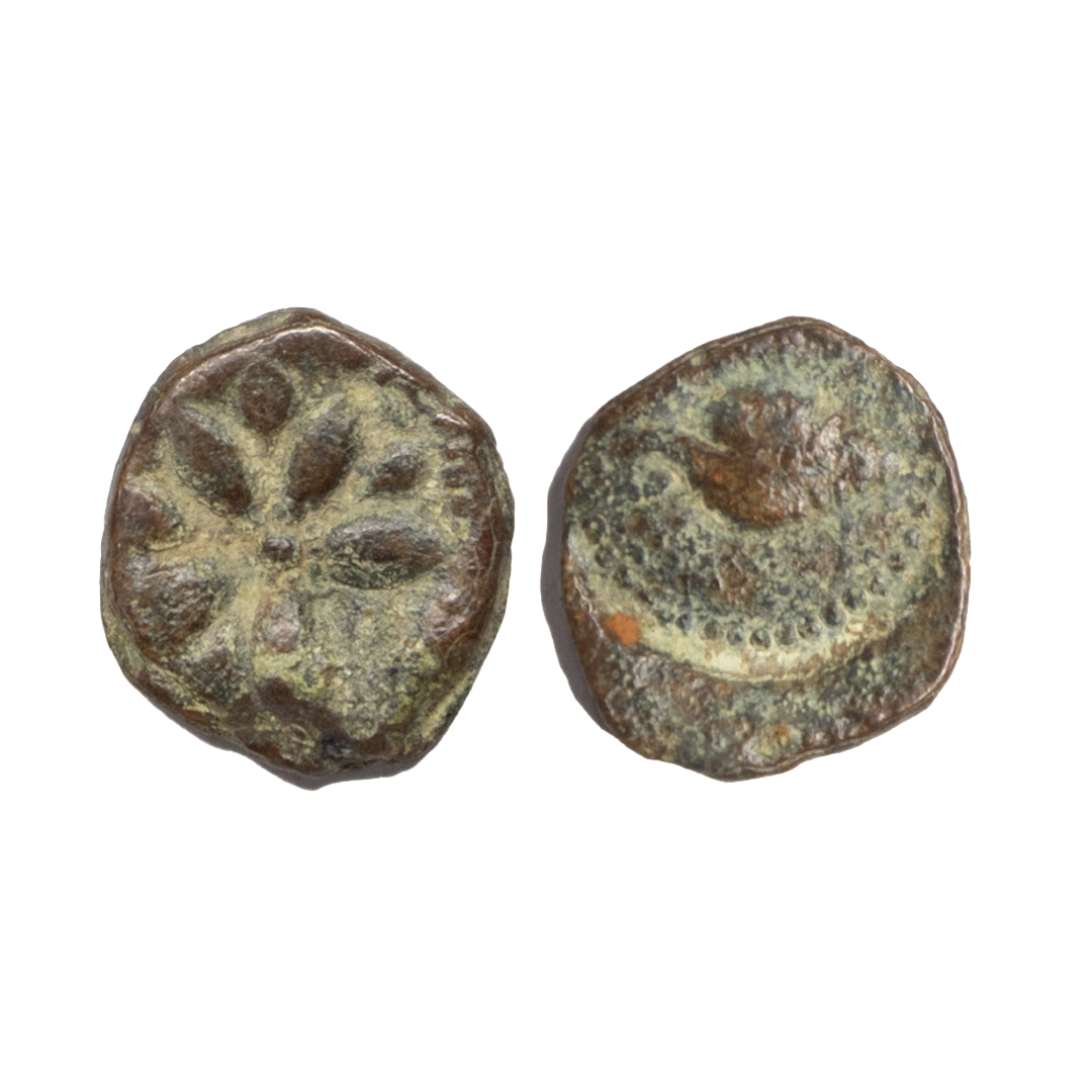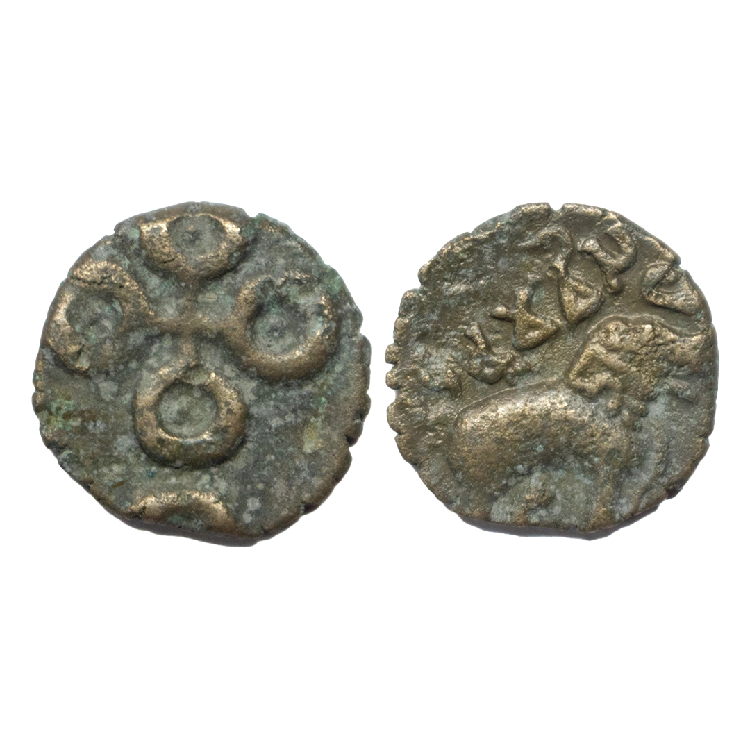 Ancient, Archaic Series, Punch Marked Coinage, attributed to Pauravas of Kaushambi (c. 400-350 BC), Silver 1/2 Karshapana, x.xx gms, this is a single symbol coin, depicting a turtle on obverse and a bankers’ mark on reverse. This series has been attributed to the Pauravas of Kaushambi. As per Puranas, on account of heavy floods in Hastinapur, a line of descendants of Pandavas and Kauravas (what was left of them after the famous Mahabharat war) left Hastinapur and migrated towards Kaushambi around 800 BC and settled there. Present issue is attributed to them. Pauravas were a smaller group of people (not finding mention in the list of 16 janapadas in Anguttara Nikaya) but were in existence during the times of Buddha, on account of which and due to use of an earlier weight standard, these coins are said to have been in circulation till a period when Magadha was spreading its empire but was yet to conquer the central/western parts of modern Uttar Pradesh. Thus the period during which this series might have been in circulation should not have lasted later than 380 BC to 360 BC, Mitchiner # pp.810 - 813 and Hardaker # pp. 109 - 113, very fine+, very rare.