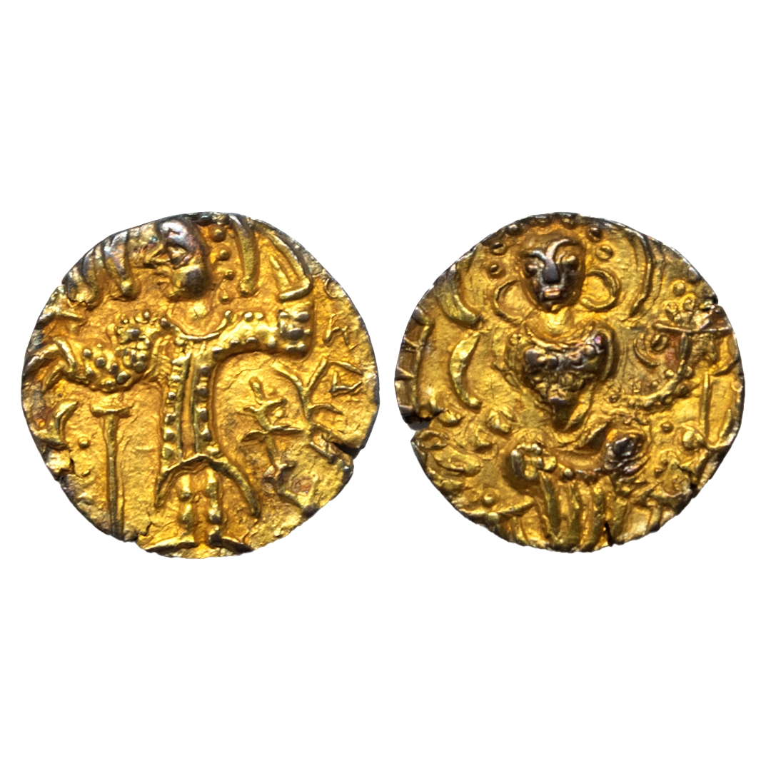 Indus Valley Civilization (mature phase, 2500 - 2000 BC), gold ornamental diskette, to be strung into a necklace, said to have been recovered as a surface find at Lothal, Gujarat. 2.11g. 30.79mm.Extremely fine, Extremely rare.A large hoard of such diskettes was found in May 2000 at Mandi in Muzaffarnagar district, Western Uttar Pradesh. The hoard was contained in two bronze containers and included many varieties of spacer beads, hollow terminal beads, single and double bell-shaped beads, and thin circular diskettes, similar to this one. However, this diskette is reportedly found at Lothal and if so, this would be the first ever object of its kind to be found at IVC sites in Western India. It has been fashioned with a rim and two very small holes with a neat cleft in on the radius. The technique and method of its manufacture are a testament to the skills and metallurgical knowledge of the Indus Valley Civilization.