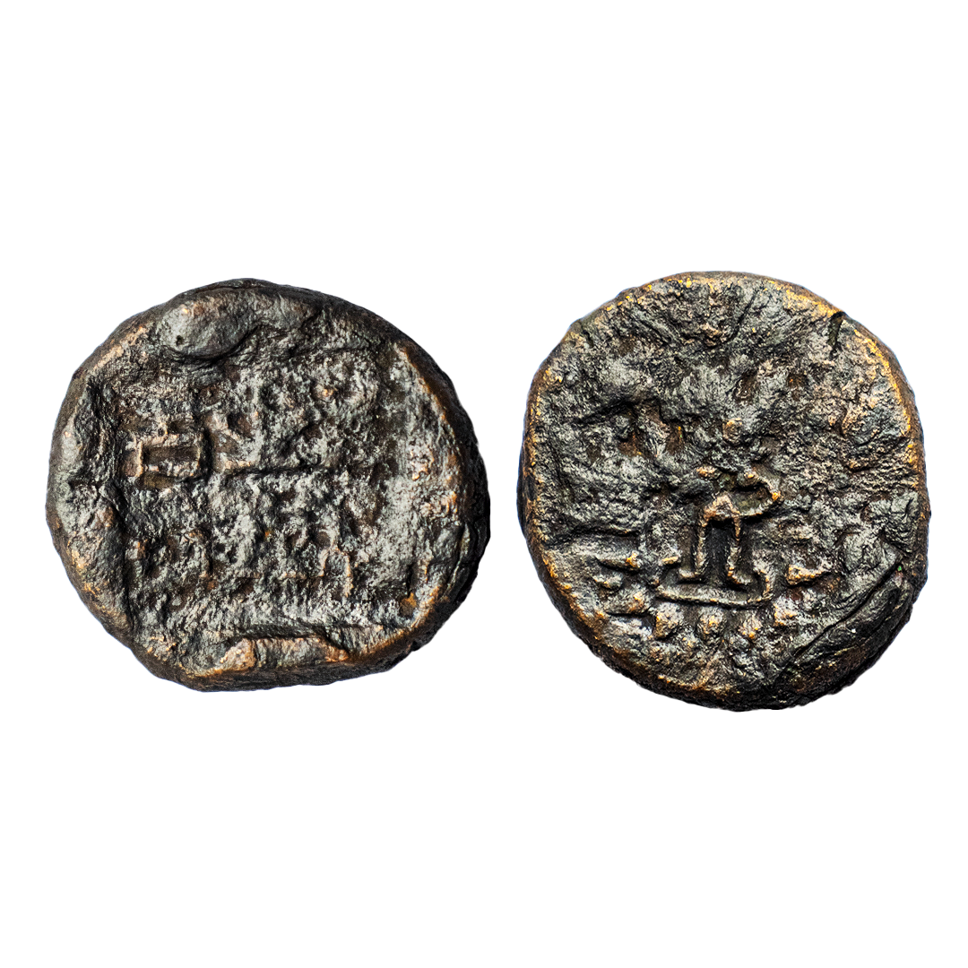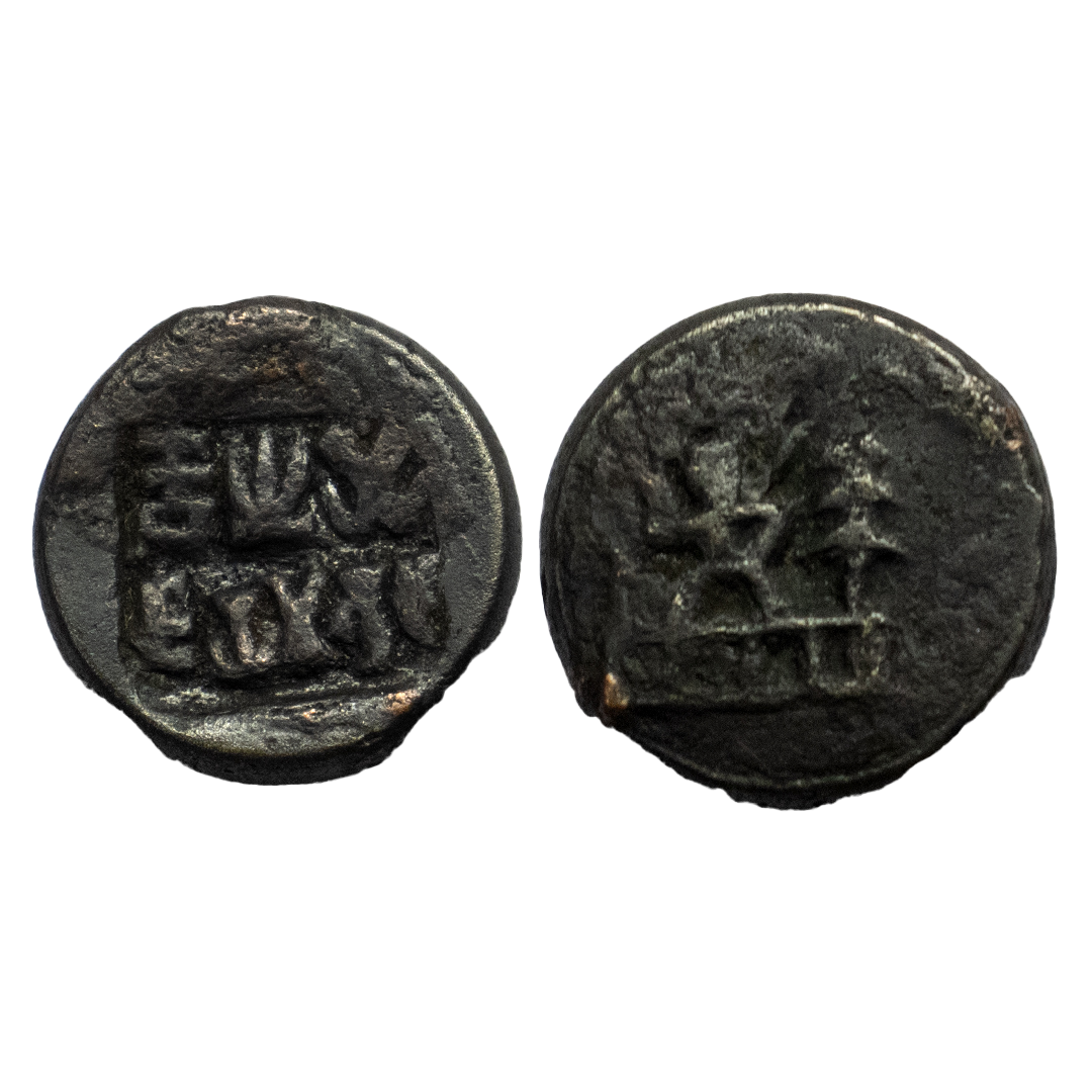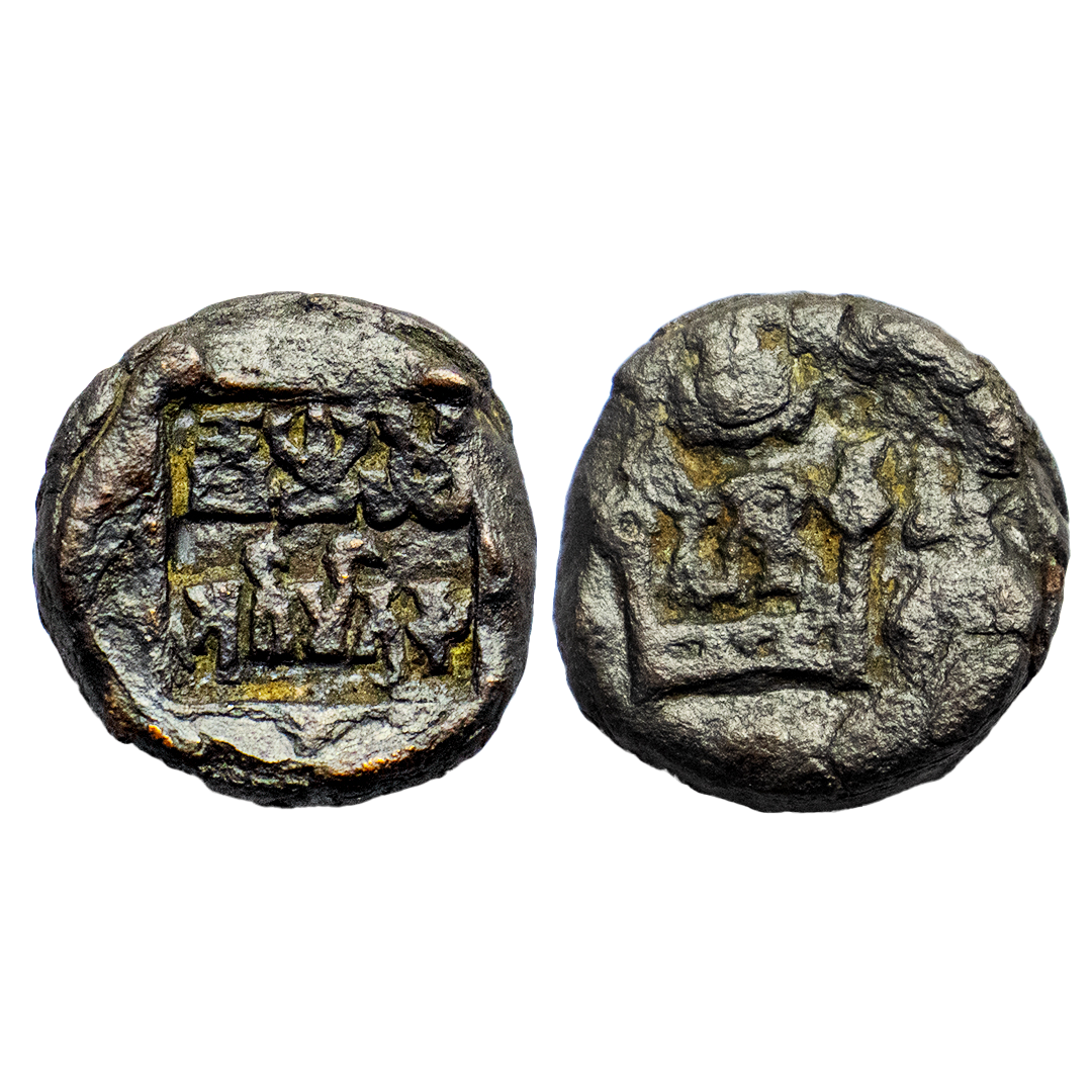 Ancient, Panchala, Jayamitra (1st Century BC), Copper Unit, Obverse: Standing deity on a pedestal, Rayed arch above, Reverse: Three Panchala symbols on top, Brahmi legend ‘Jayamitrasa’ below, Pieper # 1337, pg. 206, very fine, very scarce.