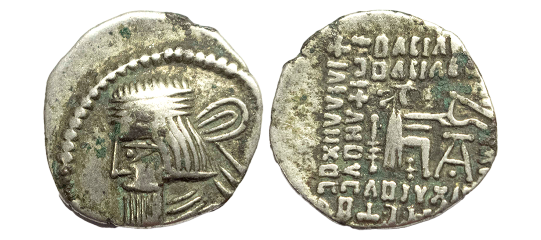 Ancient World, Arab-Sasanian. al-Muhallab b. Silver Drachm, 1.87grms, Abi Sufra. Circa AH 75-79 / AD 694-698, OBV: Crowned and diademed bust of king to right, Pahalvi legend, Dotted border around, Stars and Crescents outside dotted border, REV: Zoroastrian Fire Altar at center, flanked by attendants on either side. (SICA 1, 203; Album 31). Extremely Fine.