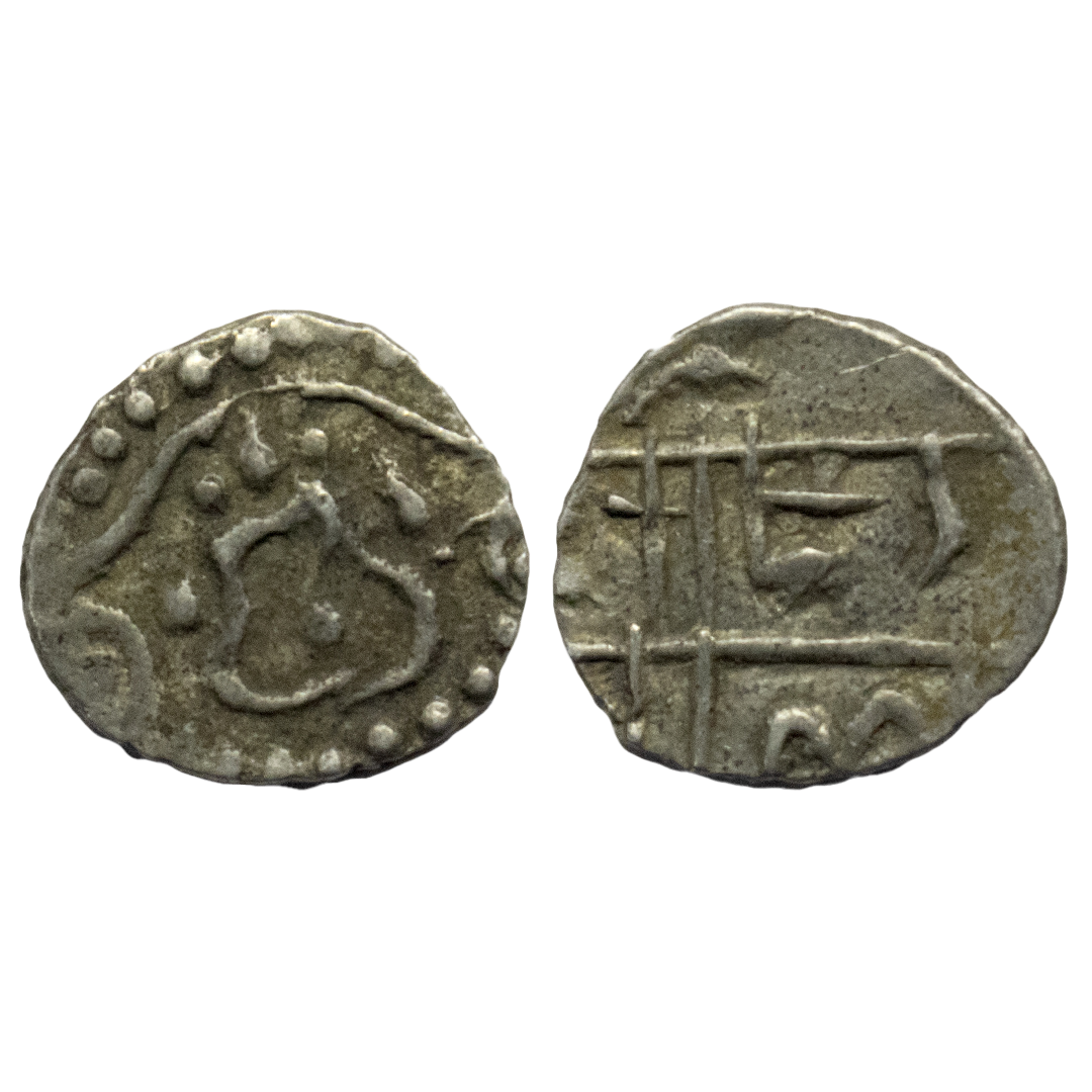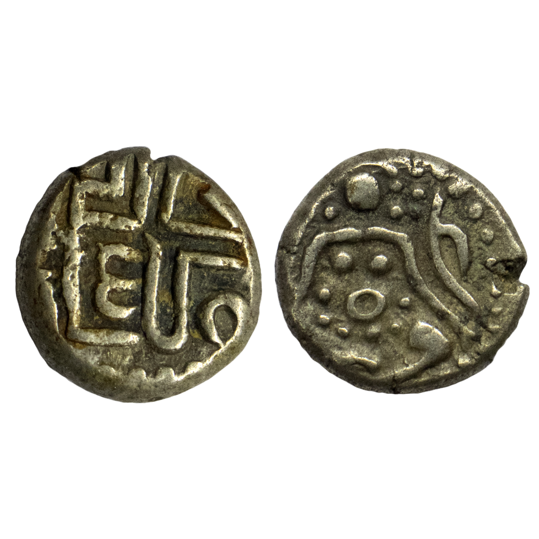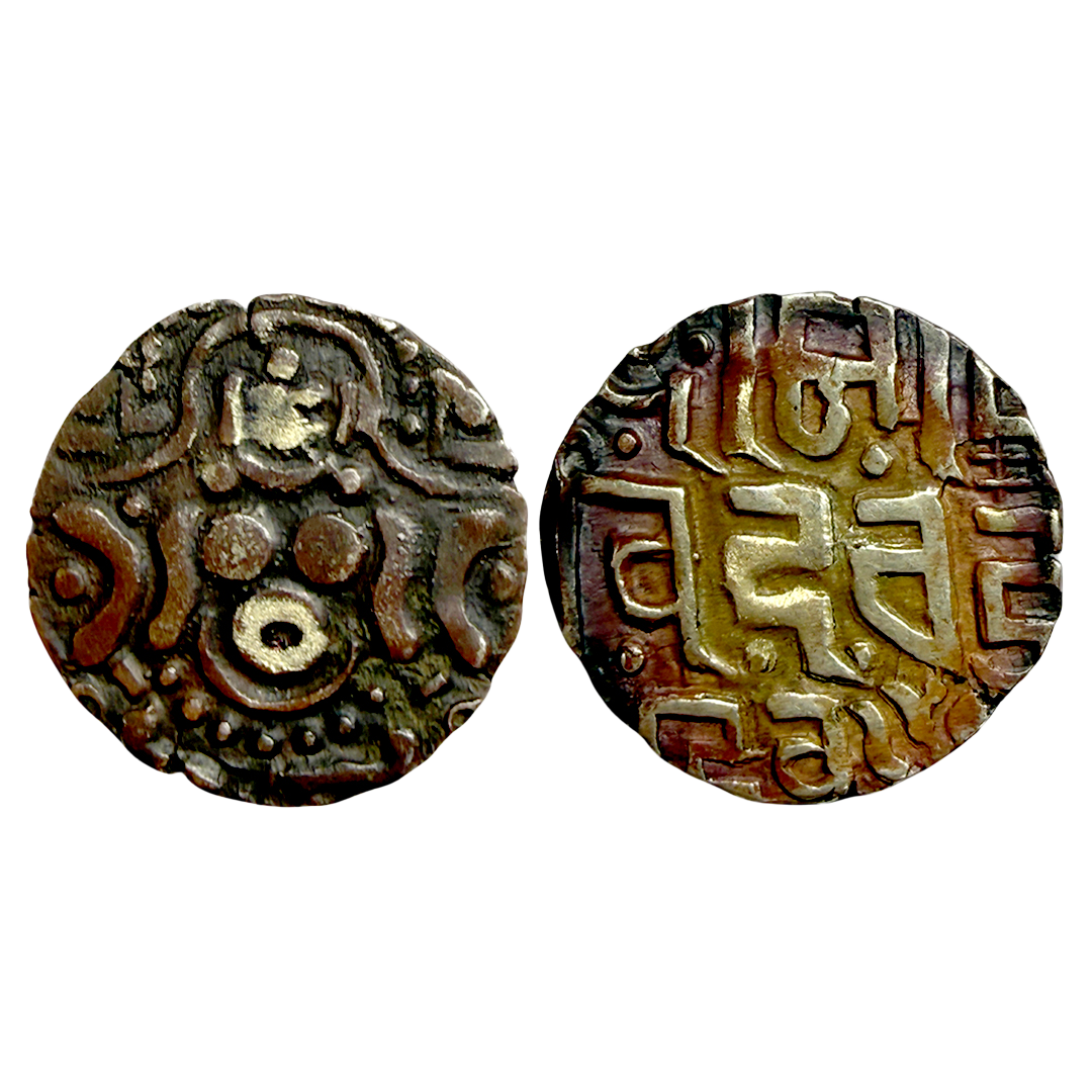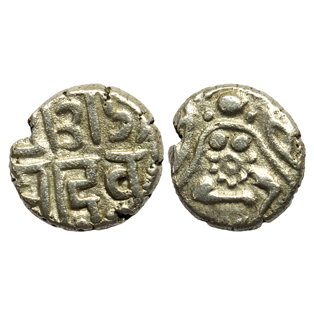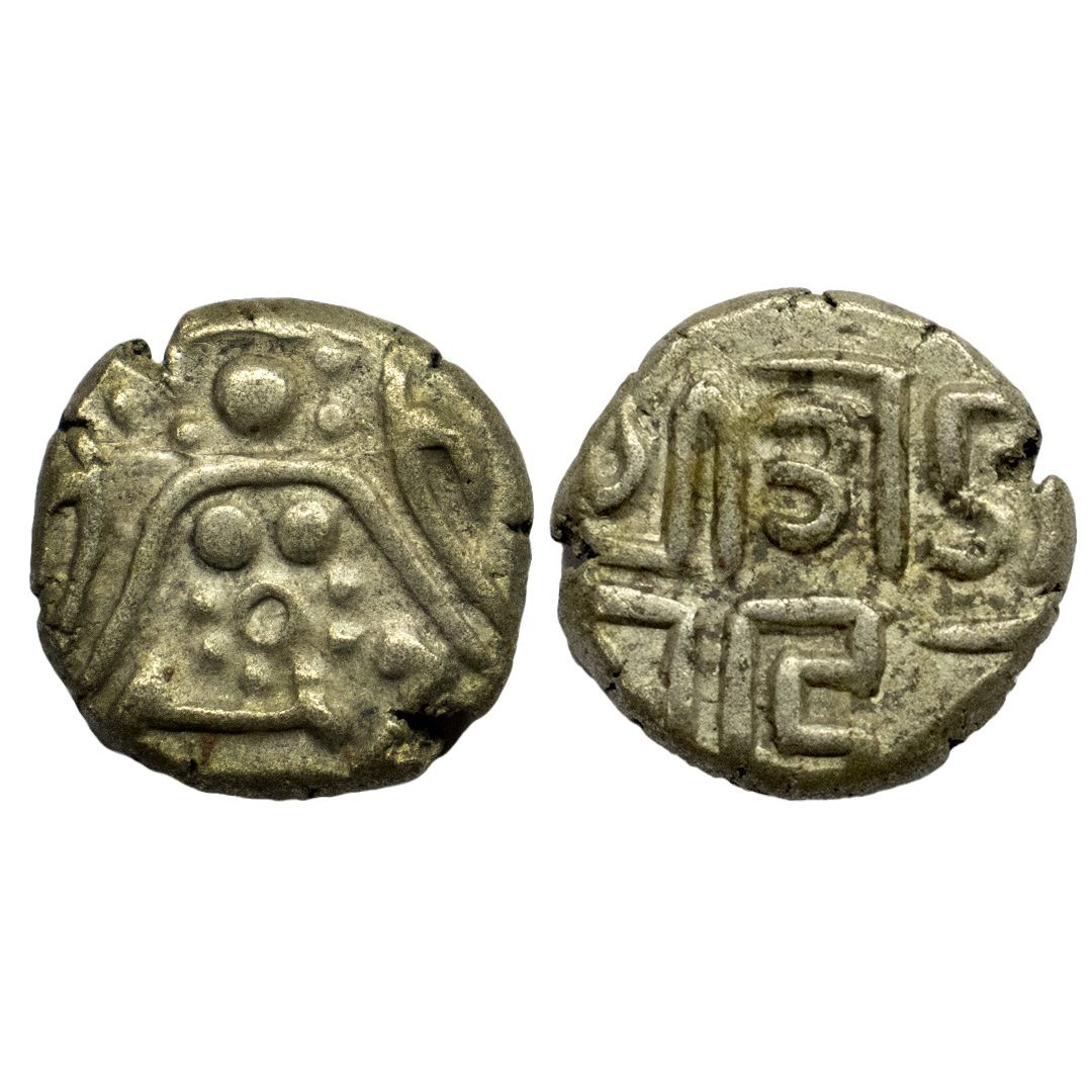 Gahadavalas of Kanauj & Kashi (Varanasi), Govinda Chandradeva (1114-1154 AD), Gold 4-1/2 Masha, 4.28 gms, Obv: Goddess Lakshmi seated facing, Rev: Devanagari legend in three lines ‘Srimat-Go/vinda chandra/Deva’, & a lotus flower below the Nagari legend on the right side, J. Deyell # 145, very fine, rare.