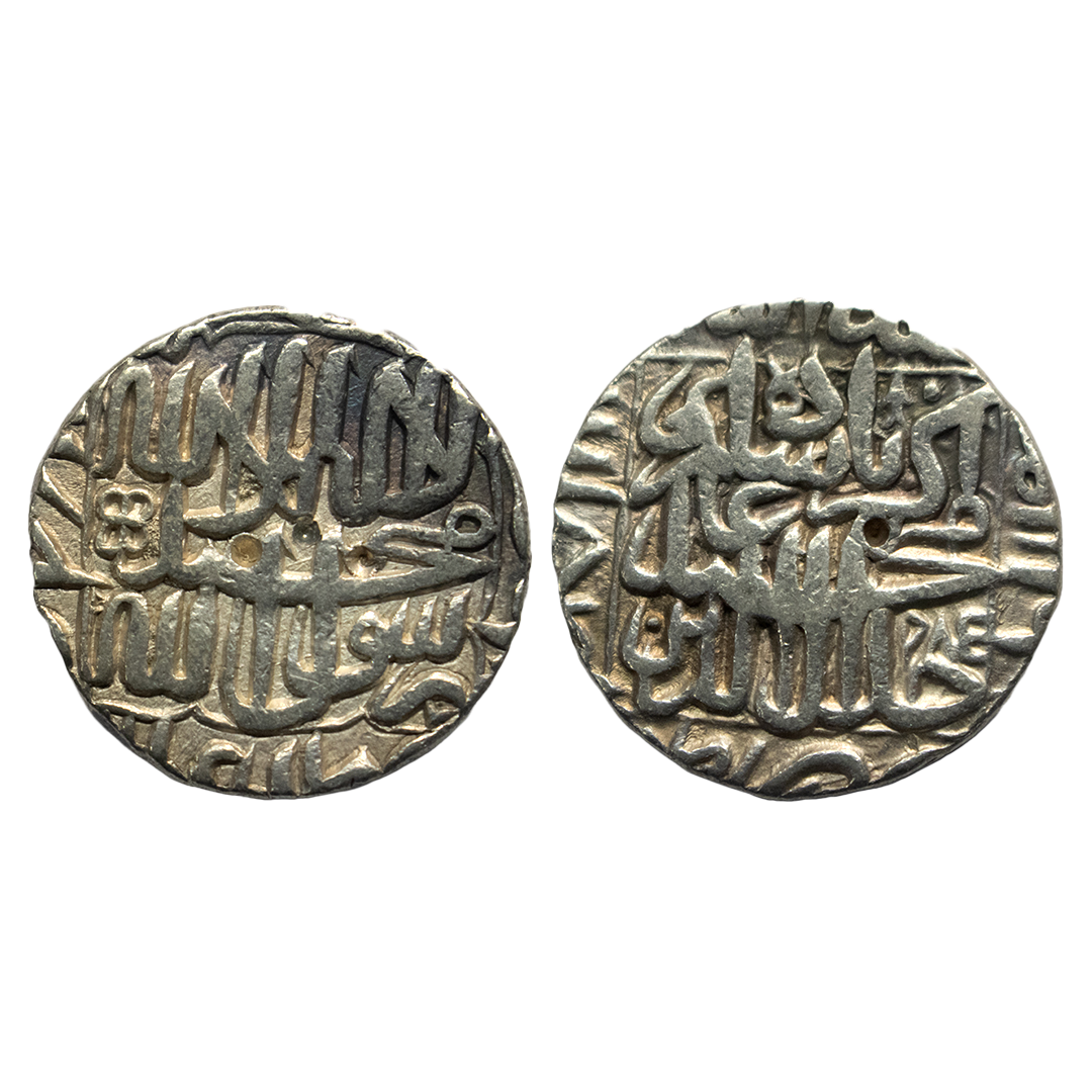 Mughal, Akbar (AH 963-1014, 1556-1605 AD), Silver Rupee, 11.39 gms, Ahmedabad Mint, Ilahi Month Mihir, Year 47, ornamental border on both sides, KM # 94.2, very fine+, very rare in this flan size and central strike.