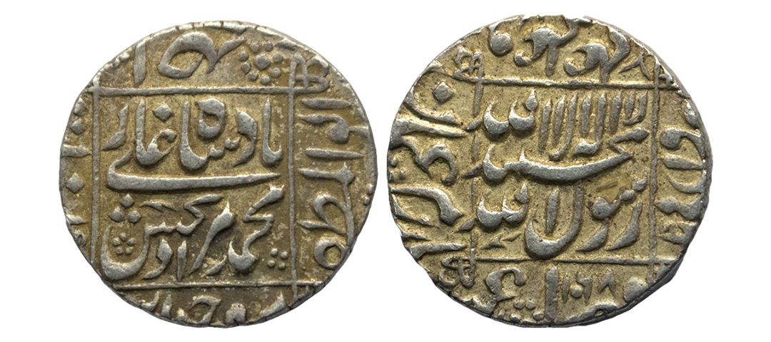 Mughals, Auragzeb (AH 1068-1118 / 1658-1707 AD), Silver Rupee, 11.540Grms, Ahmadabad Mint, AH 1118, RY 51, Last Ruling Year for Aurangzeb, Badr-i-munir type. (KM # 300.2). Very Fine+.