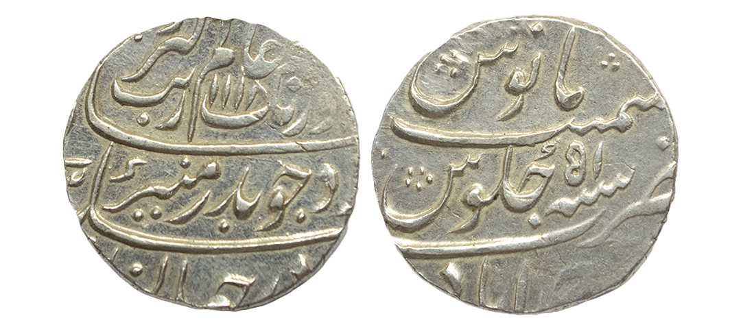 Mughals, Auragzeb (AH 1068-1118 / 1658-1707 AD), Silver Rupee, 11.540Grms, Ahmadabad Mint, AH 1118, RY 51, Last Ruling Year for Aurangzeb, Badr-i-munir type. (KM # 300.2). Very Fine+.