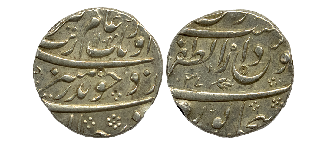 Mughals, Auragzeb (AH 1068-1118 / 1658-1707 AD), Silver Rupee, 11.540Grms, Ahmadabad Mint, AH 1118, RY 51, Last Ruling Year for Aurangzeb, Badr-i-munir type. (KM # 300.2). Very Fine+.