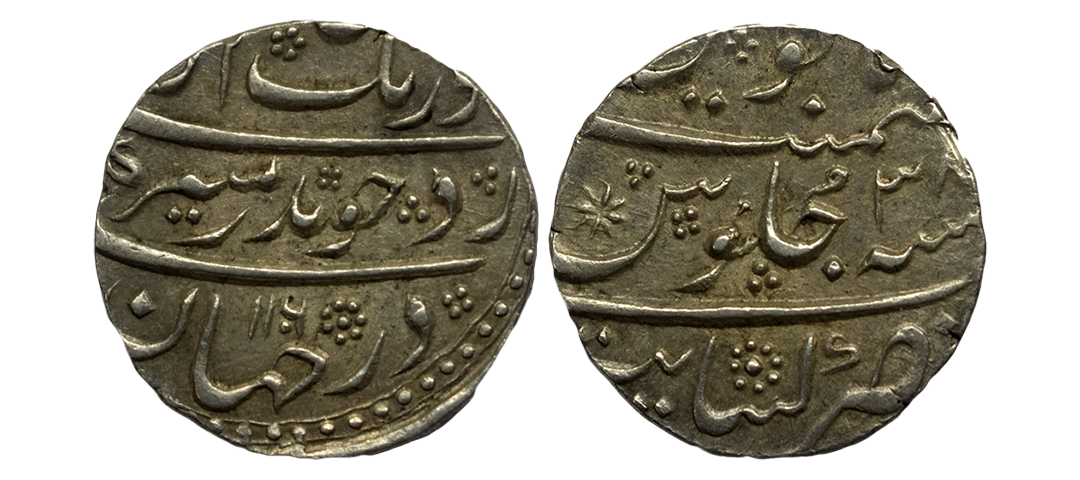 Mughals, Auragzeb (AH 1068-1118 / 1658-1707 AD), Silver Rupee, 11.540Grms, Ahmadabad Mint, AH 1118, RY 51, Last Ruling Year for Aurangzeb, Badr-i-munir type. (KM # 300.2). Very Fine+.