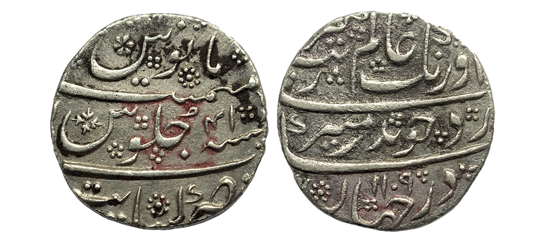 Mughals, Auragzeb (AH 1068-1118 / 1658-1707 AD), Silver Rupee, 11.540Grms, Ahmadabad Mint, AH 1118, RY 51, Last Ruling Year for Aurangzeb, Badr-i-munir type. (KM # 300.2). Very Fine+.