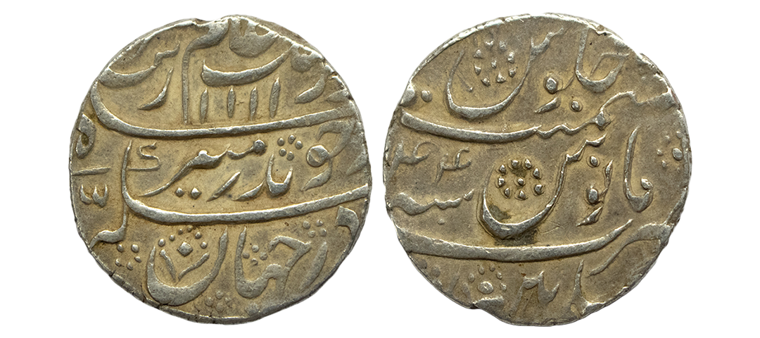 Mughals, Auragzeb (AH 1068-1118 / 1658-1707 AD), Silver Rupee, 11.540Grms, Ahmadabad Mint, AH 1118, RY 51, Last Ruling Year for Aurangzeb, Badr-i-munir type. (KM # 300.2). Very Fine+.