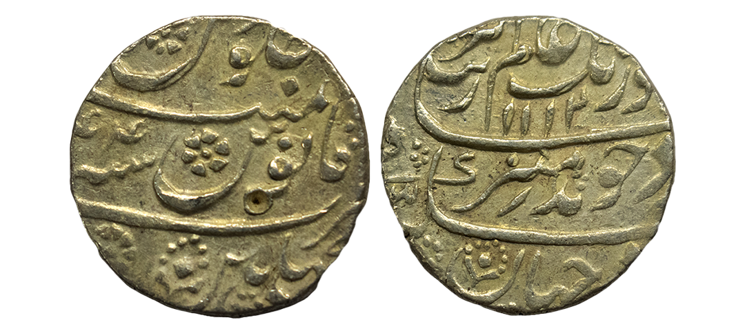 Mughals, Auragzeb (AH 1068-1118 / 1658-1707 AD), Silver Rupee, 11.540Grms, Ahmadabad Mint, AH 1118, RY 51, Last Ruling Year for Aurangzeb, Badr-i-munir type. (KM # 300.2). Very Fine+.