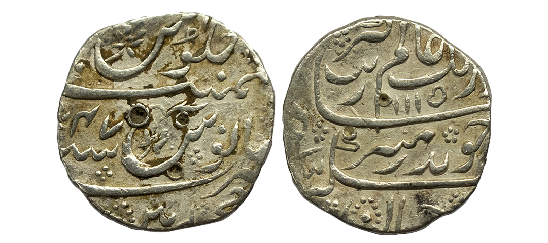 Mughals, Auragzeb (AH 1068-1118 / 1658-1707 AD), Silver Rupee, 11.540Grms, Ahmadabad Mint, AH 1118, RY 51, Last Ruling Year for Aurangzeb, Badr-i-munir type. (KM # 300.2). Very Fine+.
