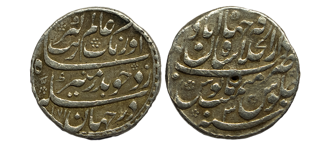 Mughals, Auragzeb (AH 1068-1118 / 1658-1707 AD), Silver Rupee, 11.540Grms, Ahmadabad Mint, AH 1118, RY 51, Last Ruling Year for Aurangzeb, Badr-i-munir type. (KM # 300.2). Very Fine+.