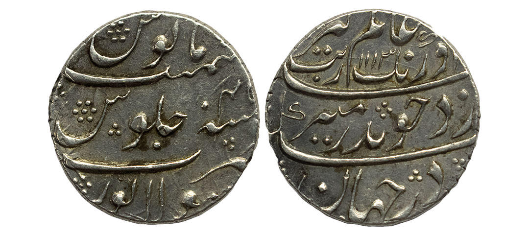 Mughals, Auragzeb (AH 1068-1118 / 1658-1707 AD), Silver Rupee, 11.540Grms, Ahmadabad Mint, AH 1118, RY 51, Last Ruling Year for Aurangzeb, Badr-i-munir type. (KM # 300.2). Very Fine+.