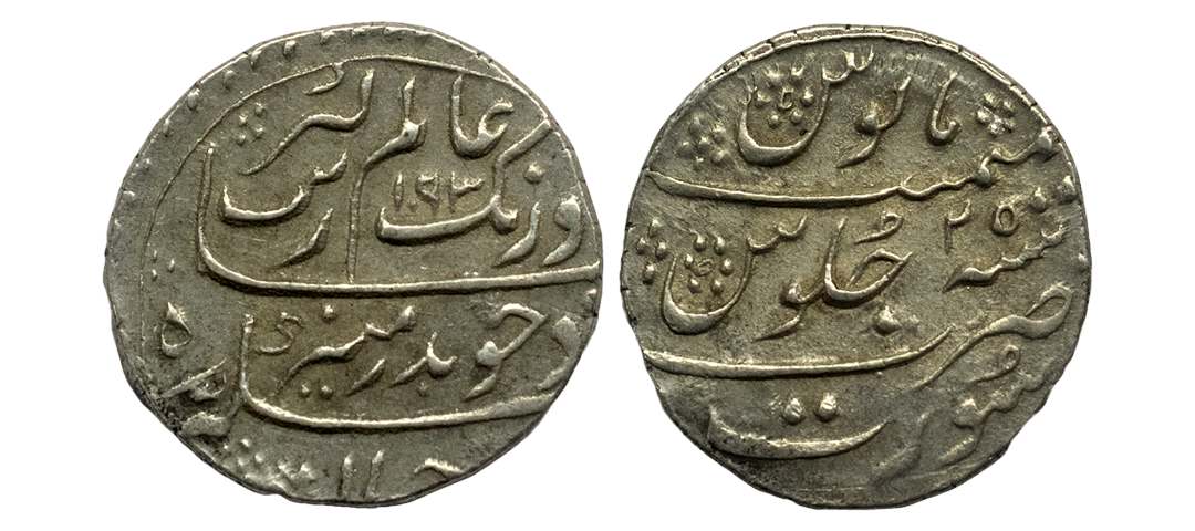 Mughals, Auragzeb (AH 1068-1118 / 1658-1707 AD), Silver Rupee, 11.540Grms, Ahmadabad Mint, AH 1118, RY 51, Last Ruling Year for Aurangzeb, Badr-i-munir type. (KM # 300.2). Very Fine+.