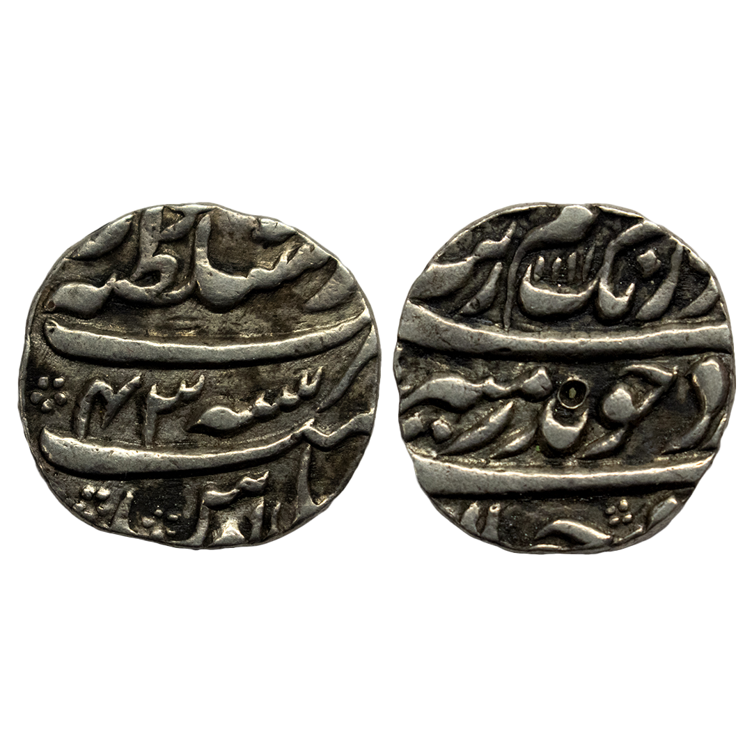Mughals, Auragzeb (AH 1068-1118 / 1658-1707 AD), Silver Rupee, 11.540Grms, Ahmadabad Mint, AH 1118, RY 51, Last Ruling Year for Aurangzeb, Badr-i-munir type. (KM # 300.2). Very Fine+.