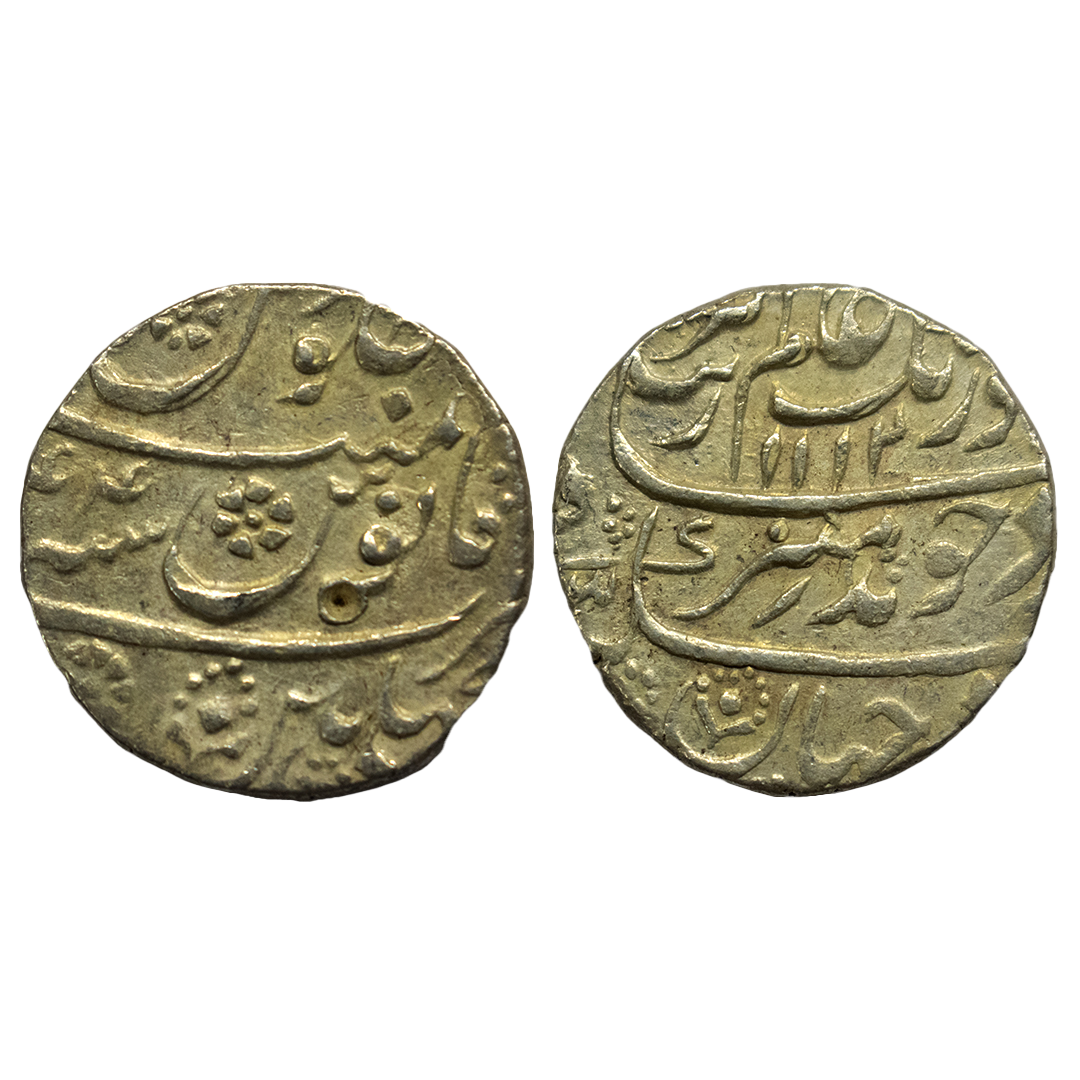 Mughals, Auragzeb (AH 1068-1118 / 1658-1707 AD), Silver Rupee, 11.540Grms, Ahmadabad Mint, AH 1118, RY 51, Last Ruling Year for Aurangzeb, Badr-i-munir type. (KM # 300.2). Very Fine+.