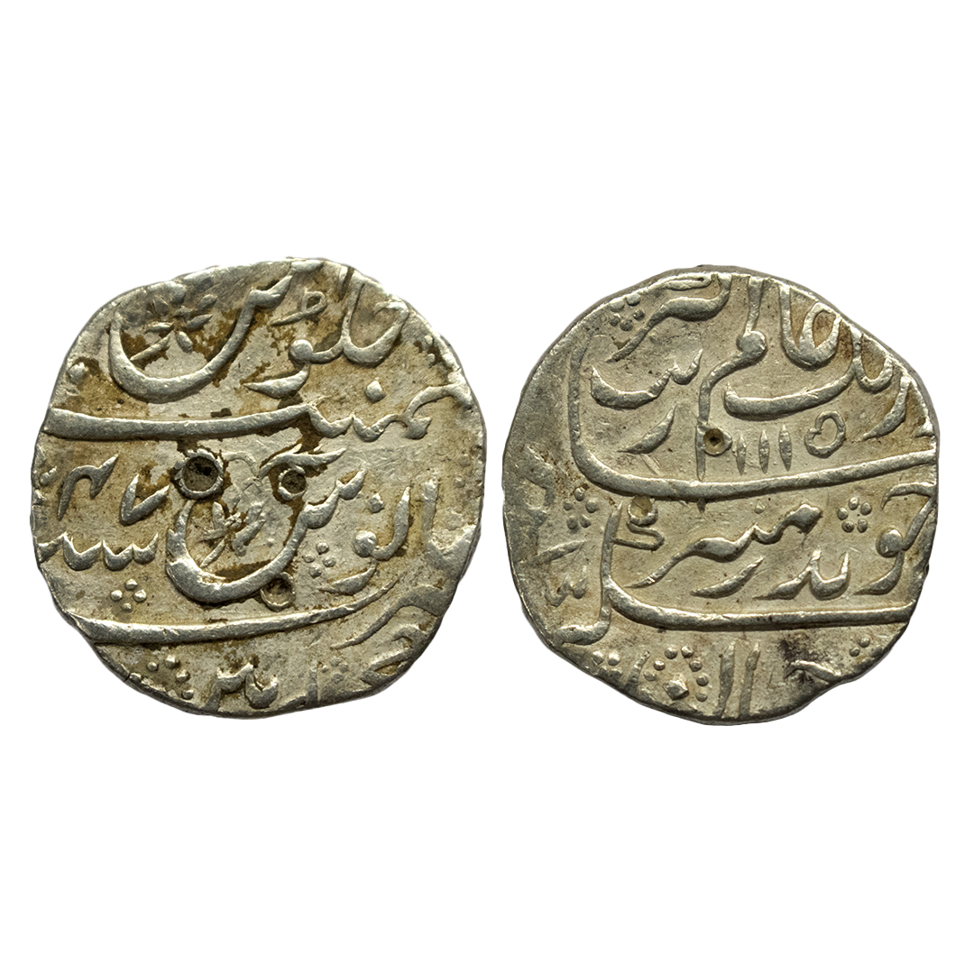 Mughals, Auragzeb (AH 1068-1118 / 1658-1707 AD), Silver Rupee, 11.540Grms, Ahmadabad Mint, AH 1118, RY 51, Last Ruling Year for Aurangzeb, Badr-i-munir type. (KM # 300.2). Very Fine+.