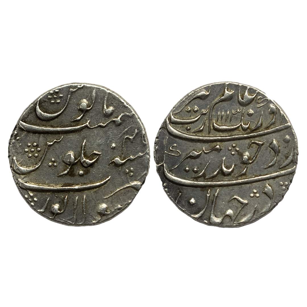 Mughals, Auragzeb (AH 1068-1118 / 1658-1707 AD), Silver Rupee, 11.540Grms, Ahmadabad Mint, AH 1118, RY 51, Last Ruling Year for Aurangzeb, Badr-i-munir type. (KM # 300.2). Very Fine+.