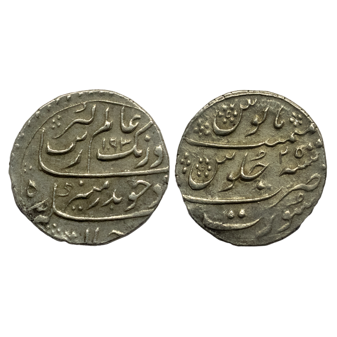 Mughals, Auragzeb (AH 1068-1118 / 1658-1707 AD), Silver Rupee, 11.540Grms, Ahmadabad Mint, AH 1118, RY 51, Last Ruling Year for Aurangzeb, Badr-i-munir type. (KM # 300.2). Very Fine+.