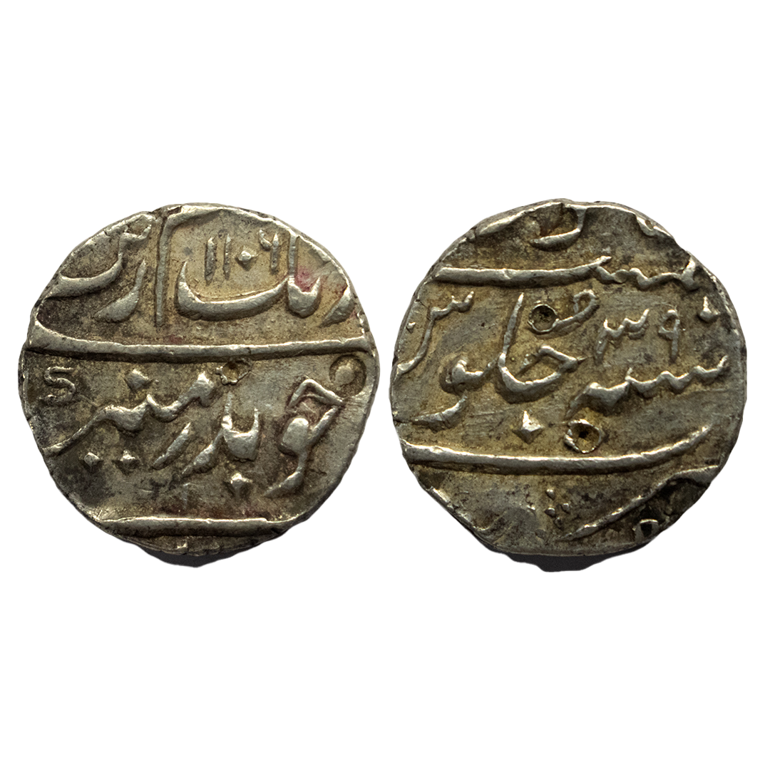 Mughals, Auragzeb (AH 1068-1118 / 1658-1707 AD), Silver Rupee, 11.540Grms, Ahmadabad Mint, AH 1118, RY 51, Last Ruling Year for Aurangzeb, Badr-i-munir type. (KM # 300.2). Very Fine+.