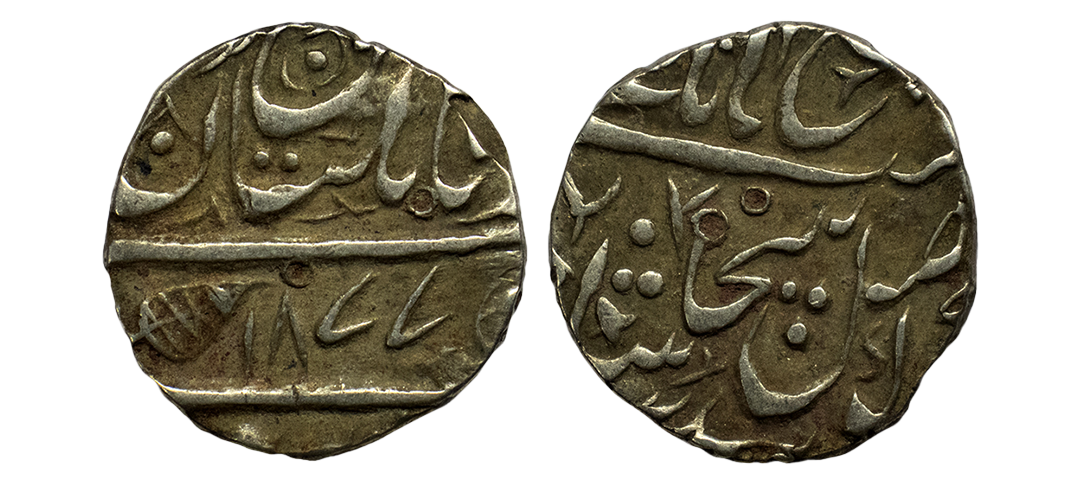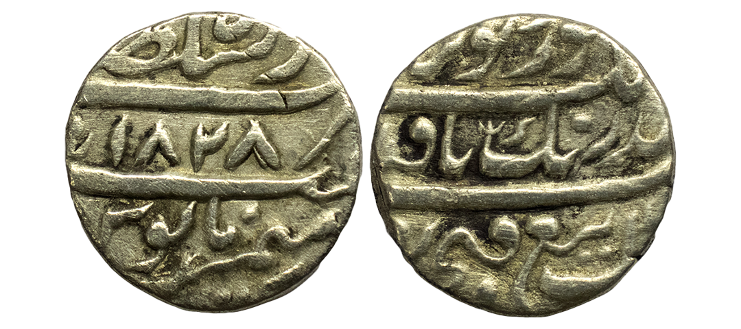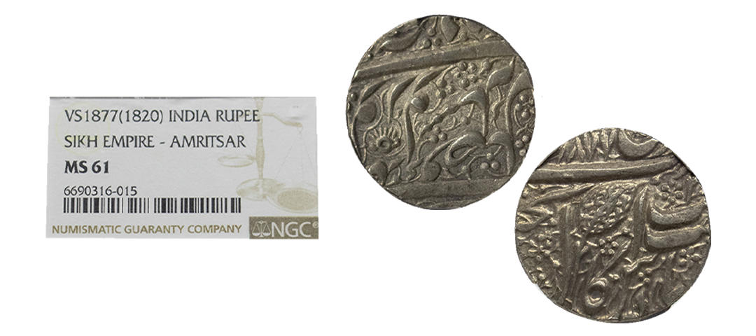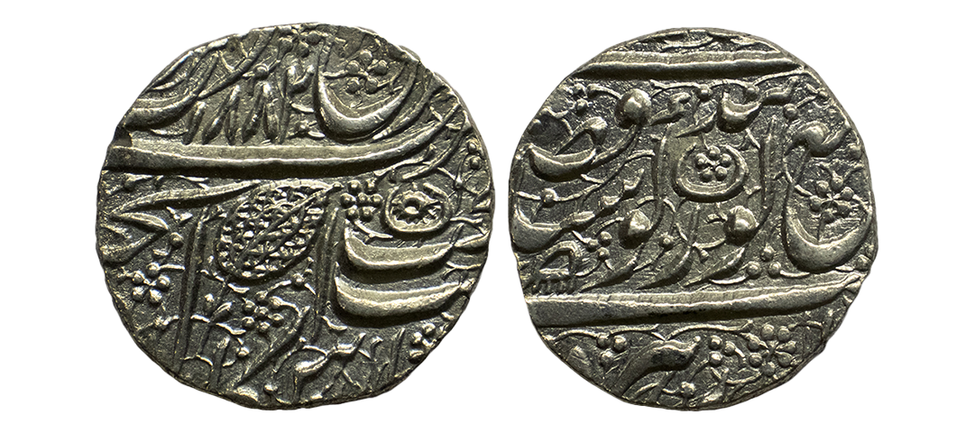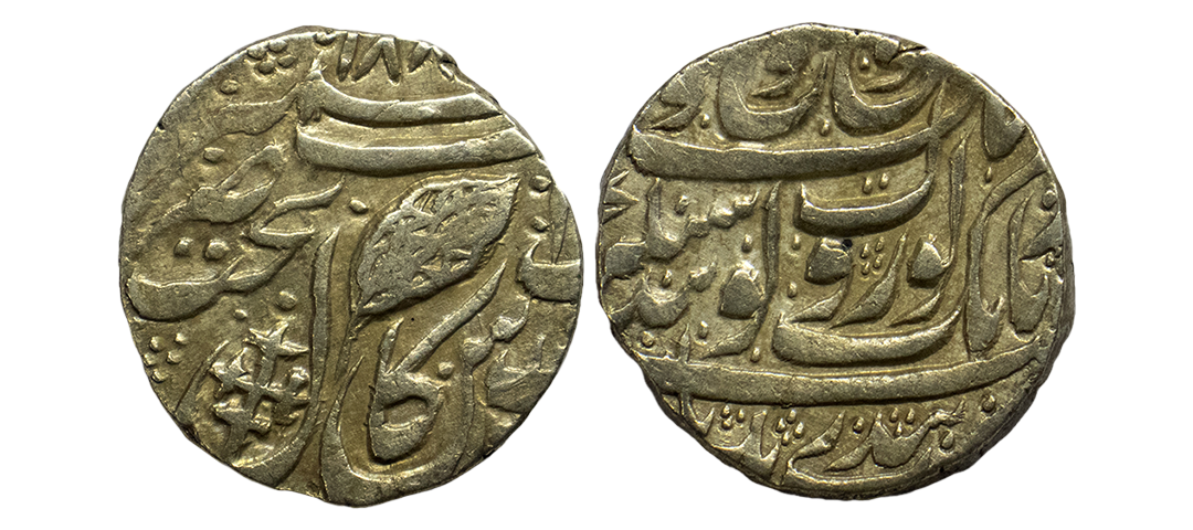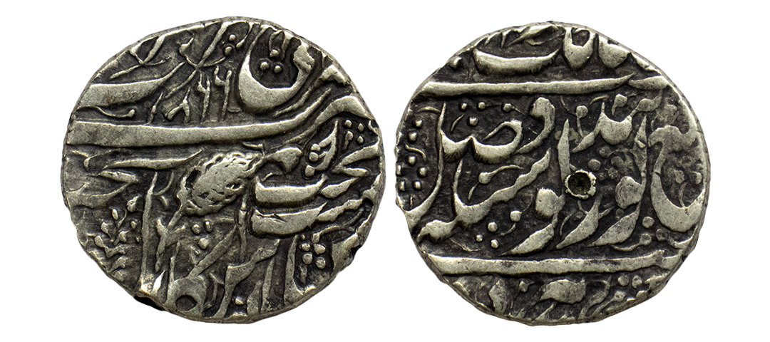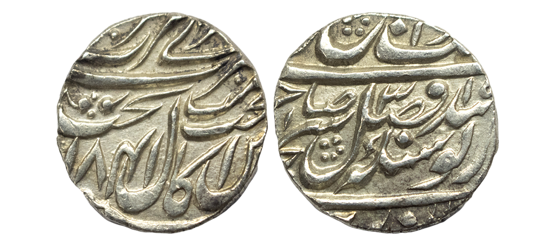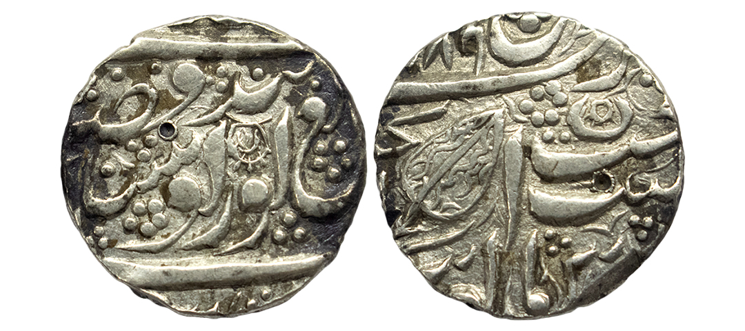 Sikh Empire, silver rupee, Amritsar mint, 'Nanak Shahi' couplet, frozen year VS 1885/97, 'OM' in Devanagari on obverse, G. Singh 01.60.02, 11.09g. Very fine+, Rare.