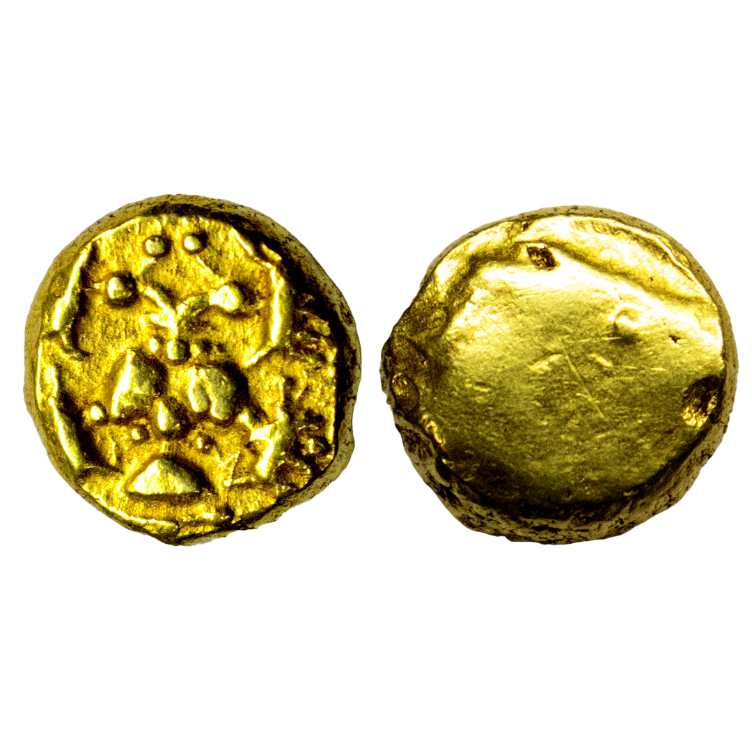 Hindu Medieval, Vijayanagara kingdom, Achyutaraya (1529-42 AD), Gold Pagoda, 3.40 gms, Obverse: Mythical twin headed bird Gandabherunda holding four elephants, two in its beaks and two in its claws, Reverse: Plain, Achyutaraya was the younger brother of Krishnadeva Raya and succeeded him in in 1529 AD. However in 1540, Aliya Rama Raya imprisoned Achyuta Raya in a coup and became the de-facto ruler, Mitch. K&A # 671/Dr. M. Girijapathi # 220, very fine, rare.