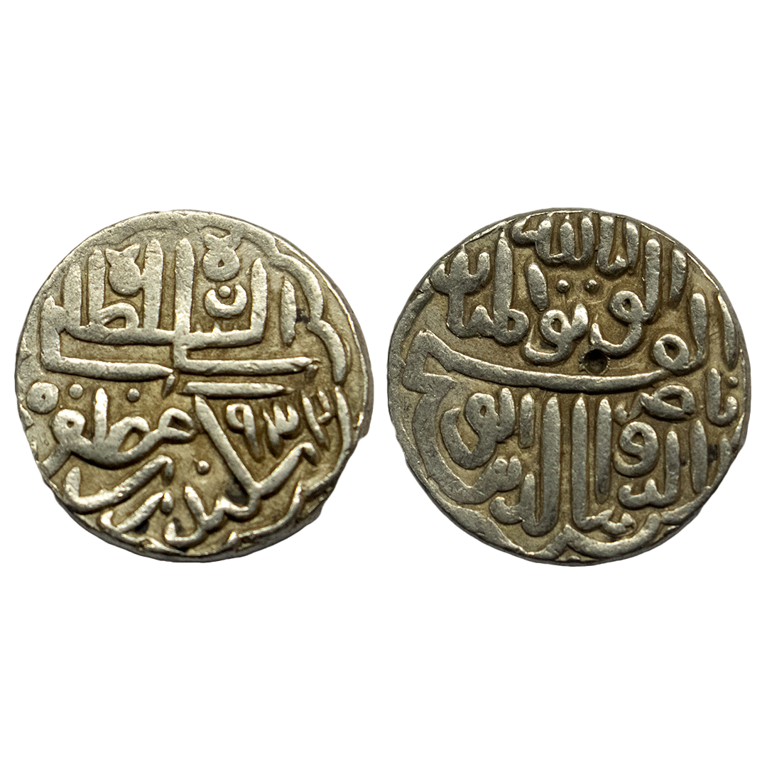 Mughals, Shah Jahan (AH 1037-1068 / 1628-1658 AD), Silver Nisar, ¼ Rupee, 2.25Grms, Dar-ul-Khilafat Agra Mint, AH 1038, RY Ahd, OBV: Nisar Shah Jahan Badshah Ghazi Sanah Ahd, REV: Zarb Dar-ul-Khilafat Agra Sanah with date. (KM # 240.1). Fine. Tooled, Extremely Rare.