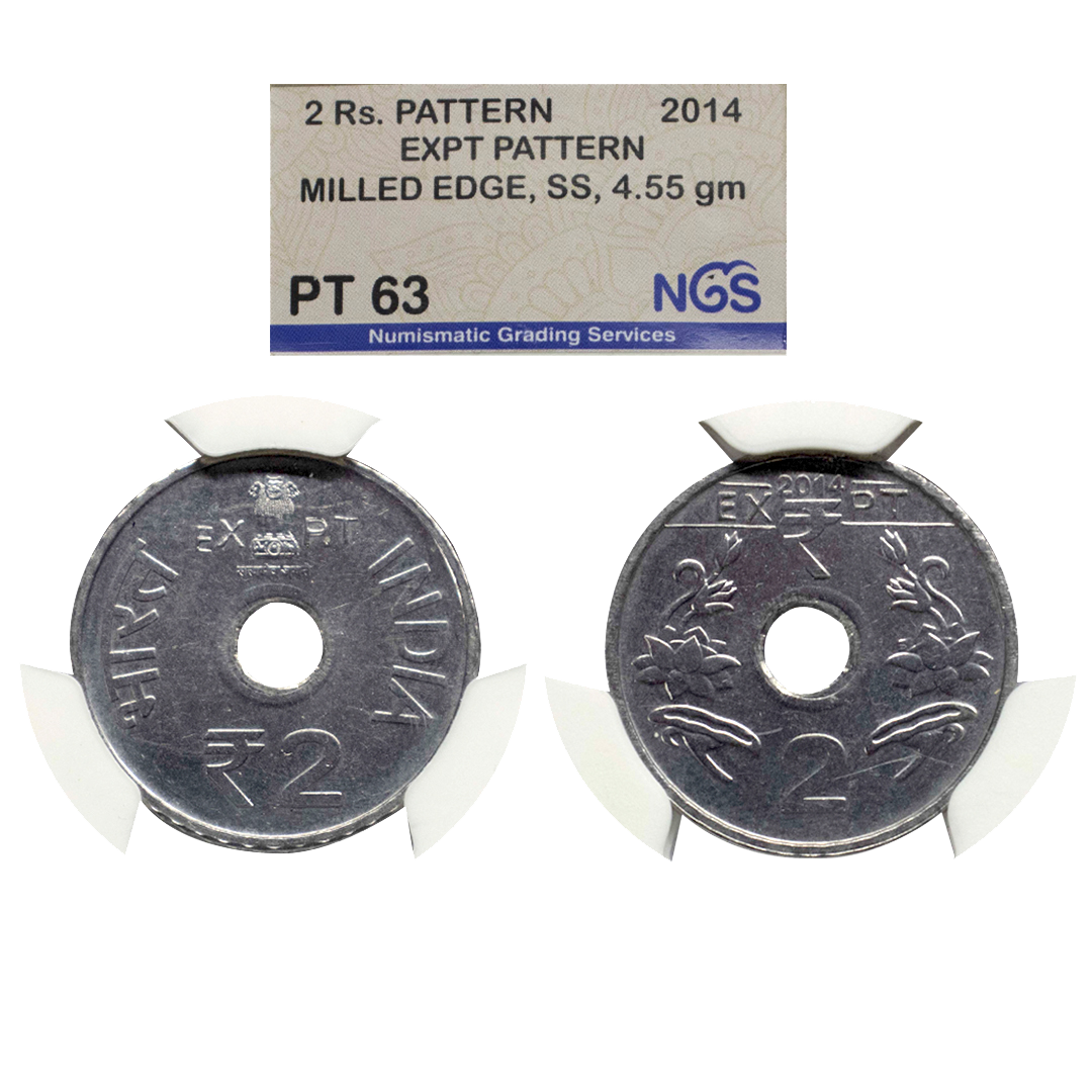Republic India, 2 Rupees, Pattern, Experimental, 2014, Stainless Steel, Milled Edge, Graded PT63 by NGS, Extremely Rare.