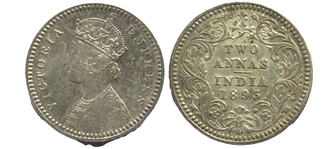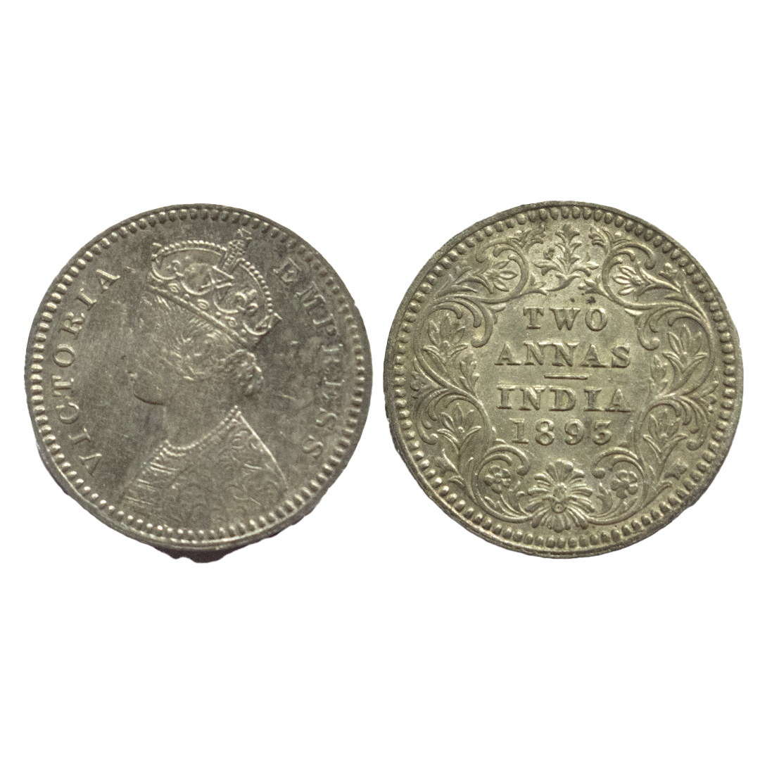 British India, Victoria Empress, Silver Two Annas, 1893, Calcutta Mint, About Uncirculated, Scarce.