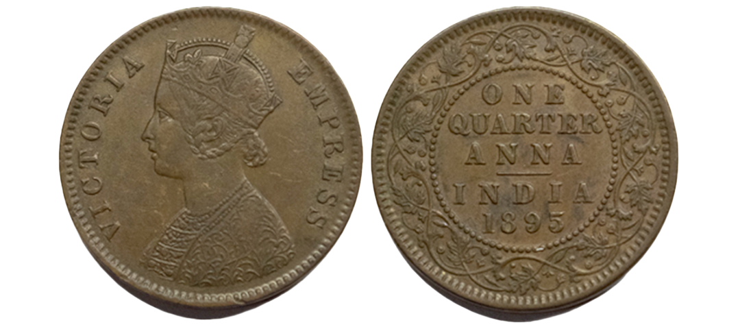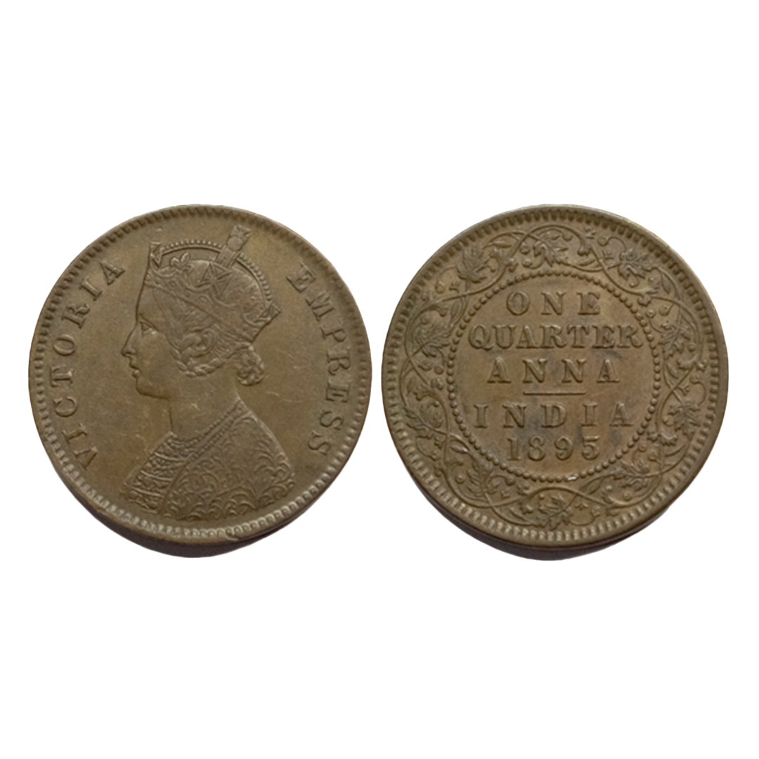British India, Victoria Queen, Copper, One Quarter Anna, 1895, Calcutta Mint, Extremely Fine, Scarce.