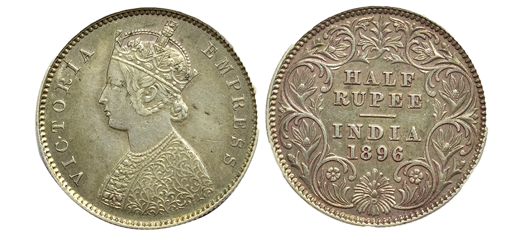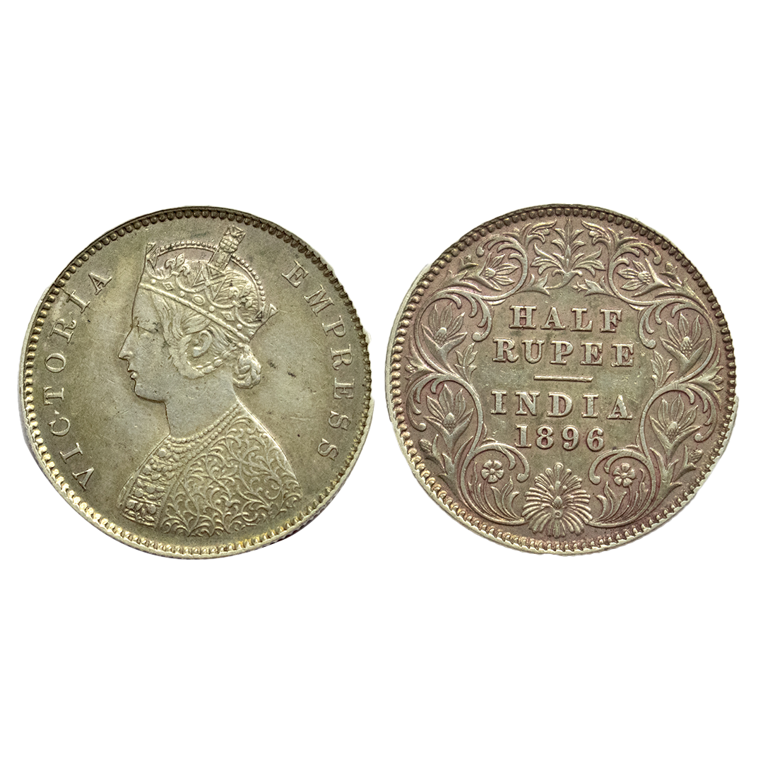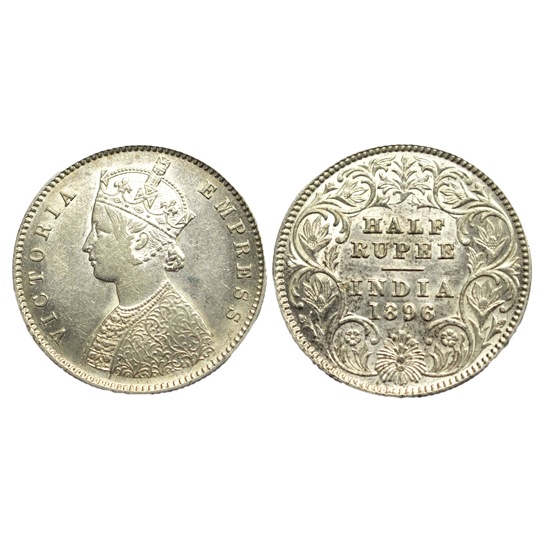 British India, Victoria Empress, Silver ½ Rupee, 1896, Calcutta Mint, A/I/C incuse, About Extremely Fine, Scarce.