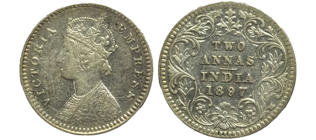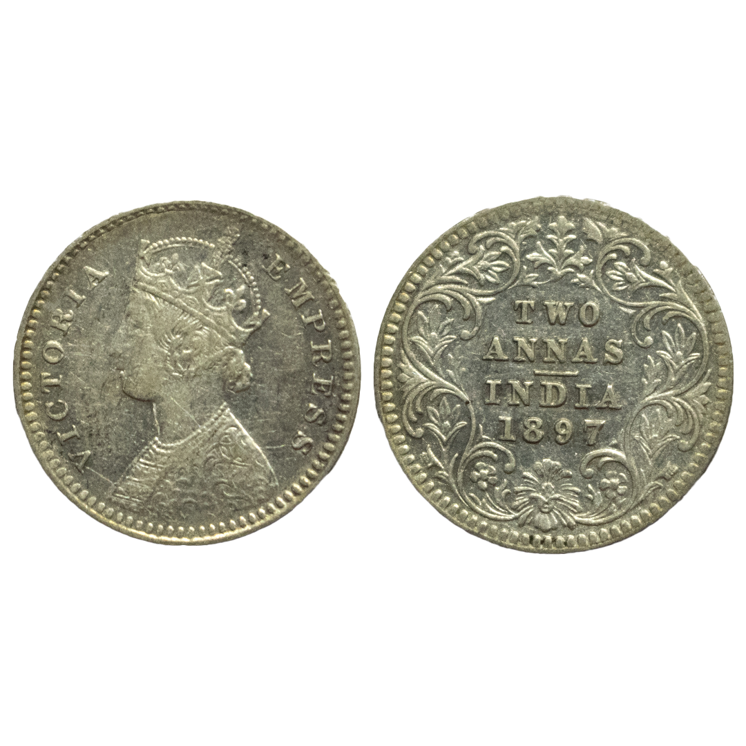 British India, Victoria Empress, Silver Two Annas, 1897, Calcutta Mint, Extremely Fine, scarce